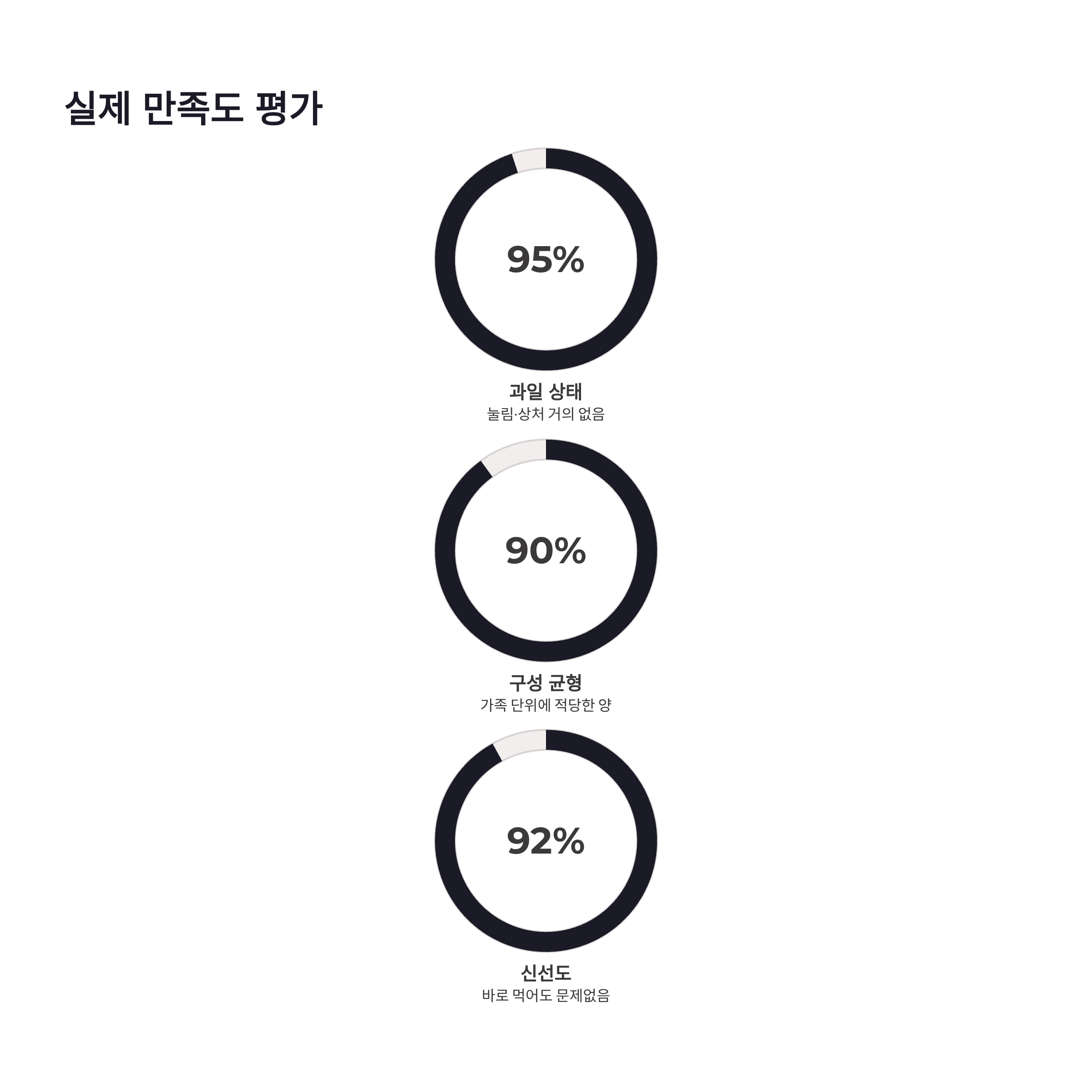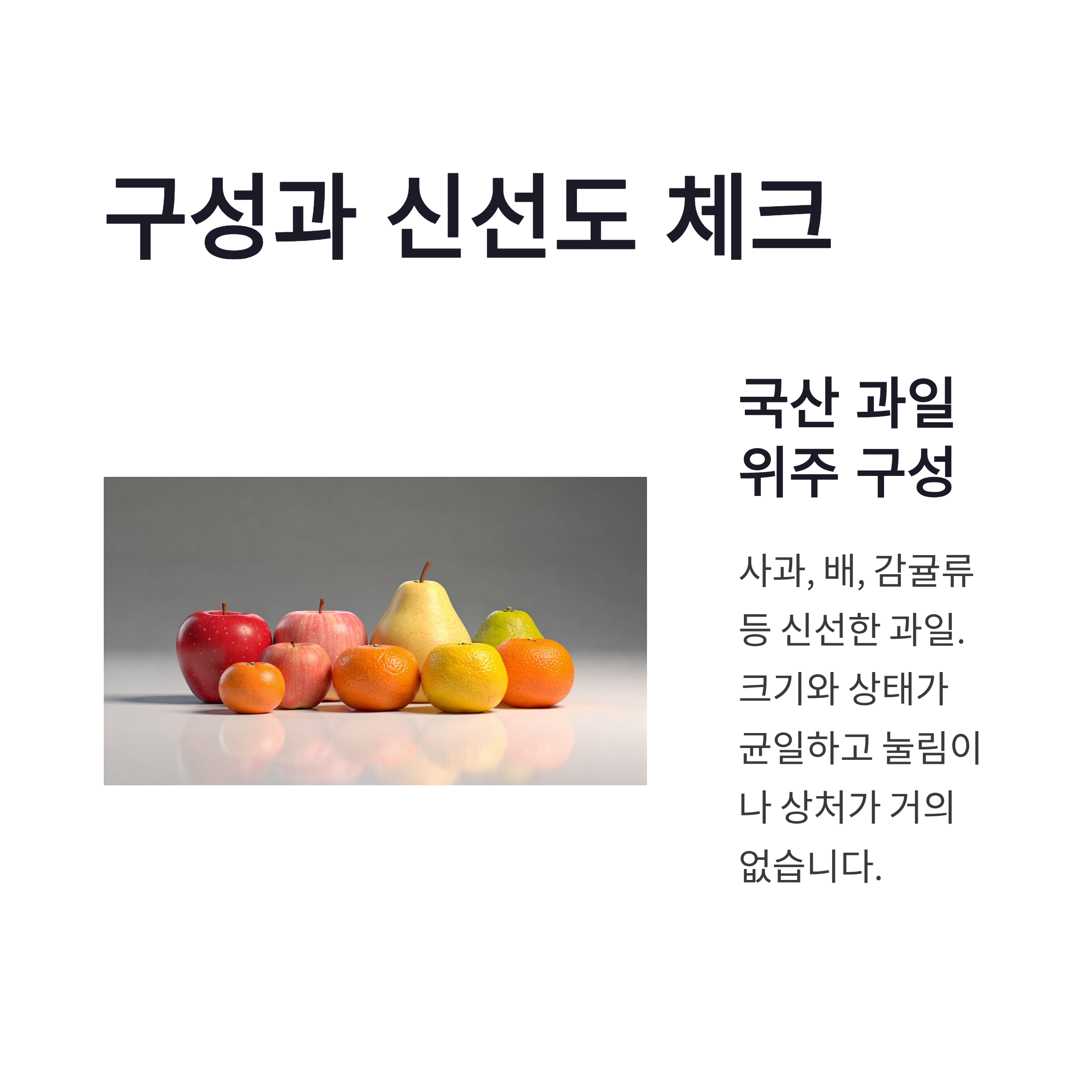 과일 선물세트에서 제일 걱정되는 건 구성과 신선도인데요, 이 부분은 직접 받아보니 체감이 좀 됐어요. 사과, 배, 감귤류 등 국산 과일 위주 구성이라 부담이 덜했고, 크기나 상태도 들쭉날쭉하지 않았습니다. 제가 느낀 기준으로 간단히 정리해보면 아래 느낌이었어요.