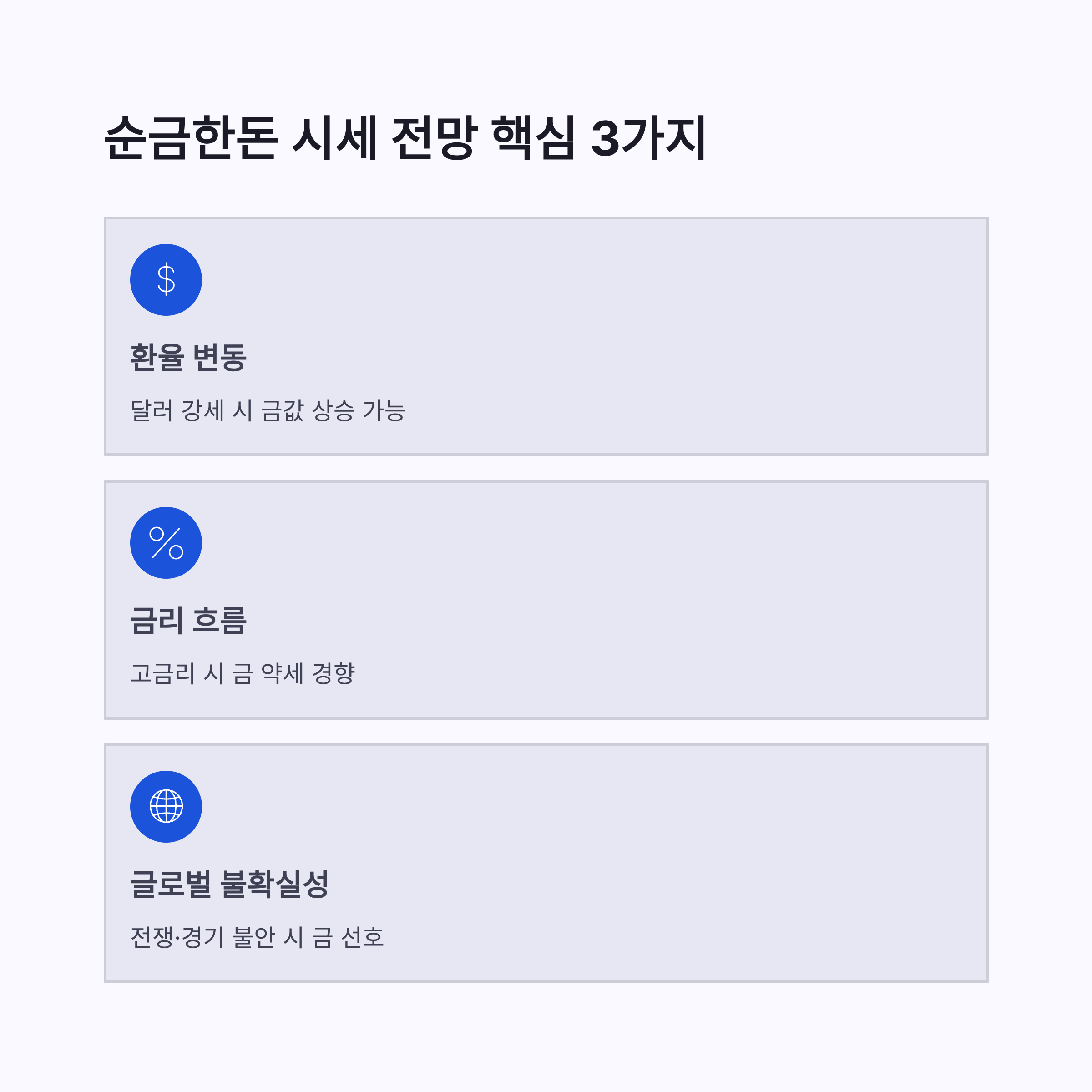 순금한돈 시세 전망은 결국 3개가 제일 크더라구요: 달러(환율), 금리 흐름, 글로벌 불확실성(전쟁/경기). 보통 달러가 강해지거나 불안감이 커지면 금이 튀는 경우가 있고, 반대로 금리가 높고 위험자산이 잘 나가면 금이 쉬어가기도 해요. 2025~2026 흐름을 보면서 제가 잡은 “현실 기준”은 이거였어요.