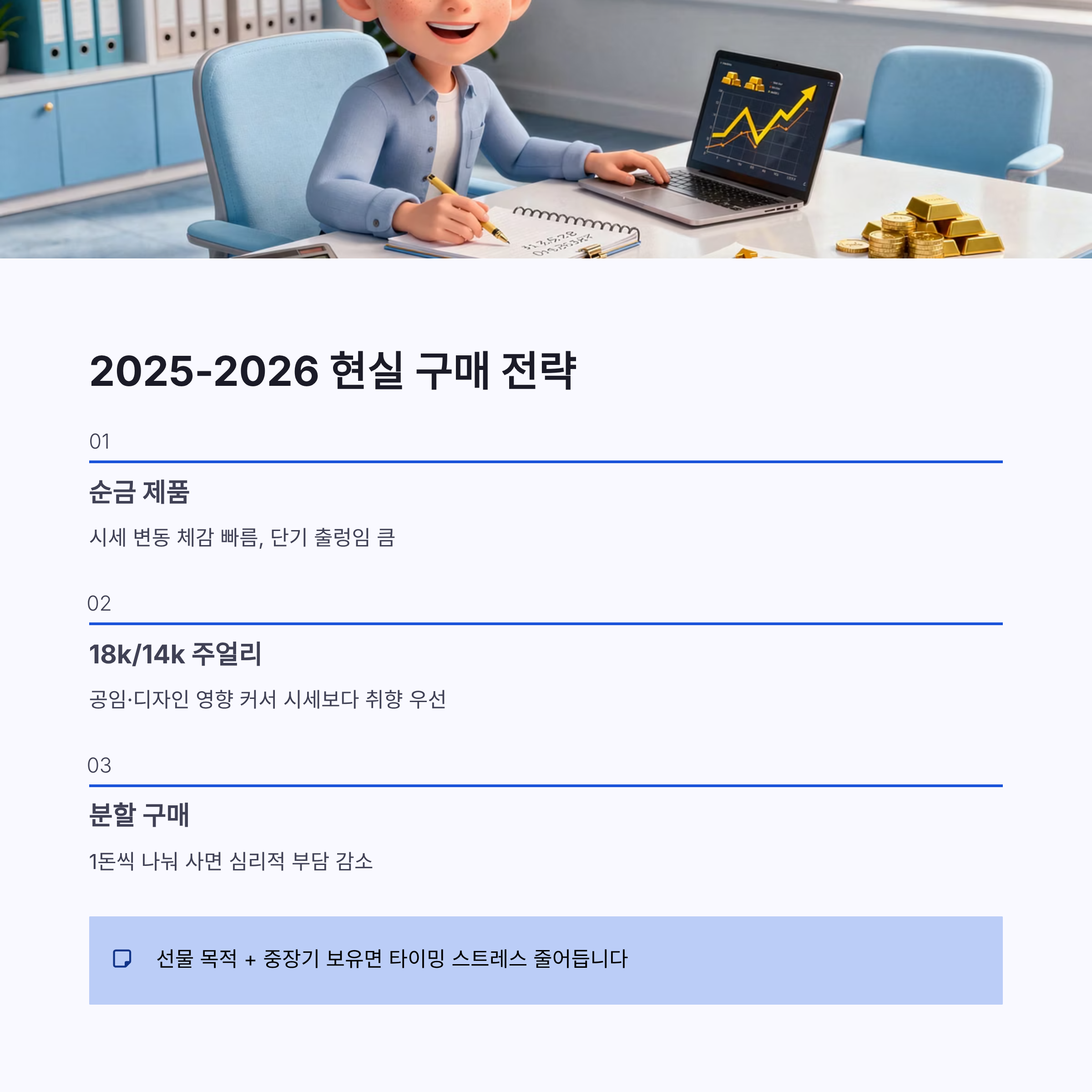 정리하면, 순금한돈 시세는 단기적으로 출렁일 수 있지만 “선물 목적 + 중장기 보유”면 타이밍 스트레스가 확 줄어요. 반대로 14k/18k는 시세 맞추기보다 ‘착용할 사람의 취향’이 1순위가 되는 느낌!