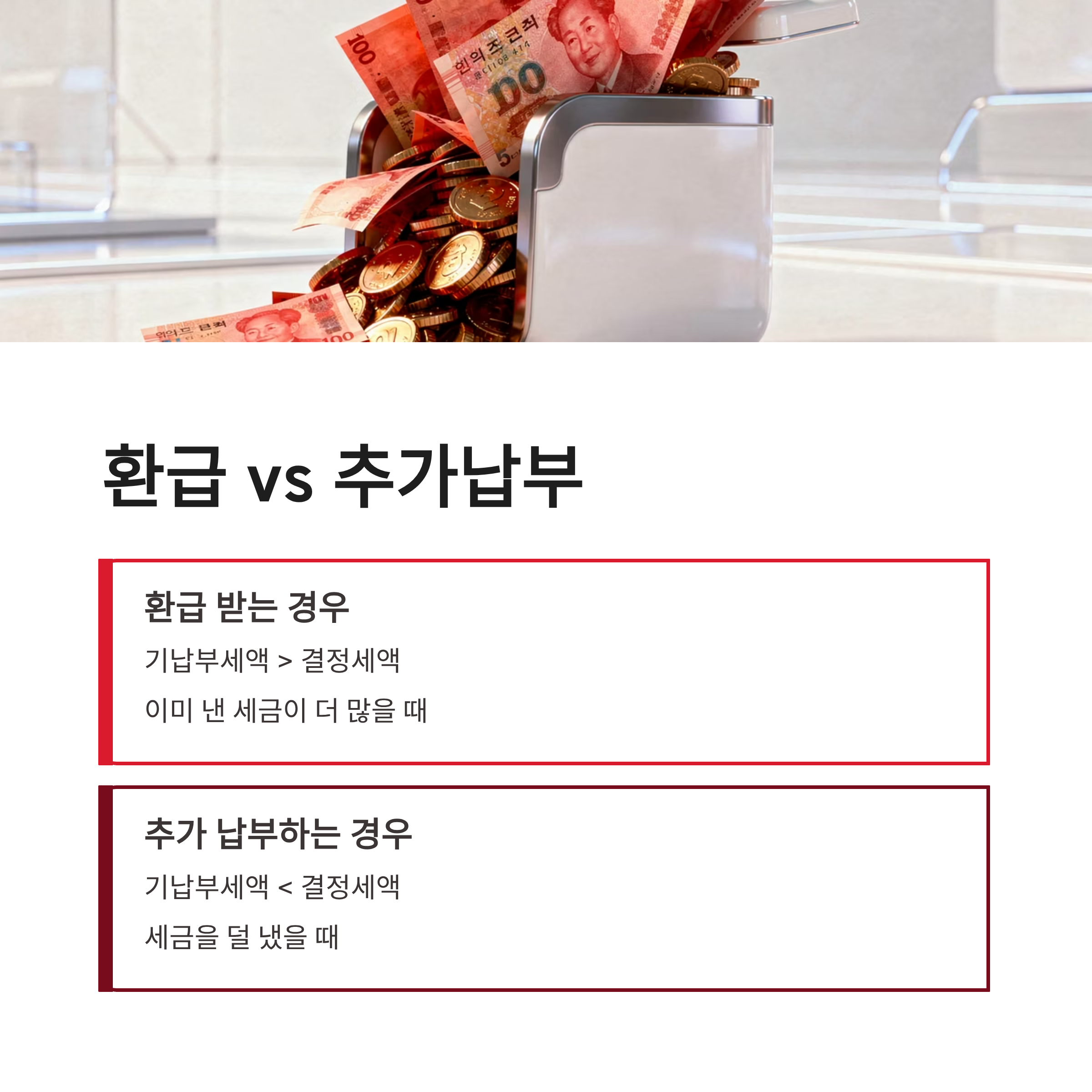 * 이미 낸 세금이 많으면 → 환급 * 덜 냈으면 → 추가 납부