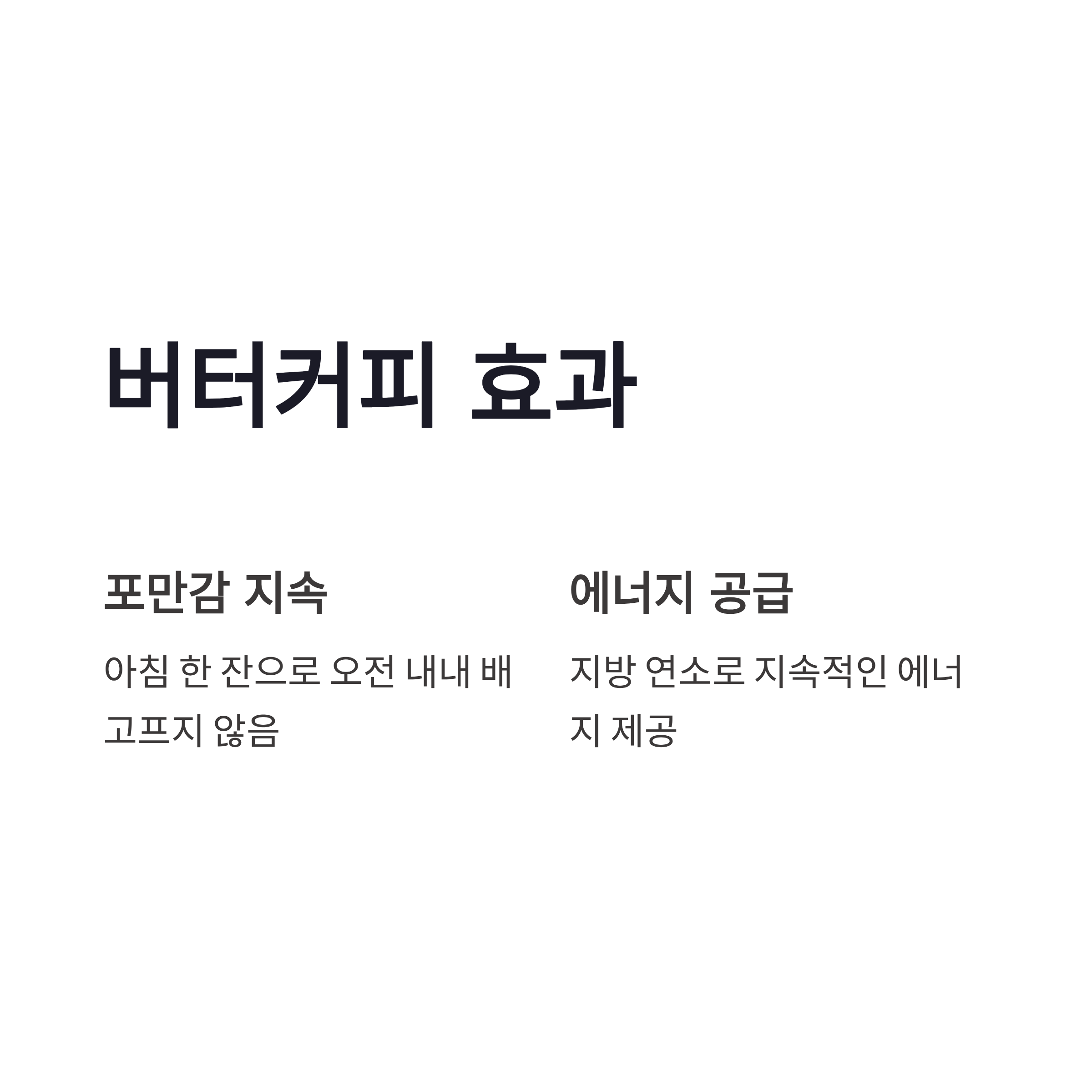 | 커피(버터커피) | 포만감 지속 | 아침에 배 안 고파요 |