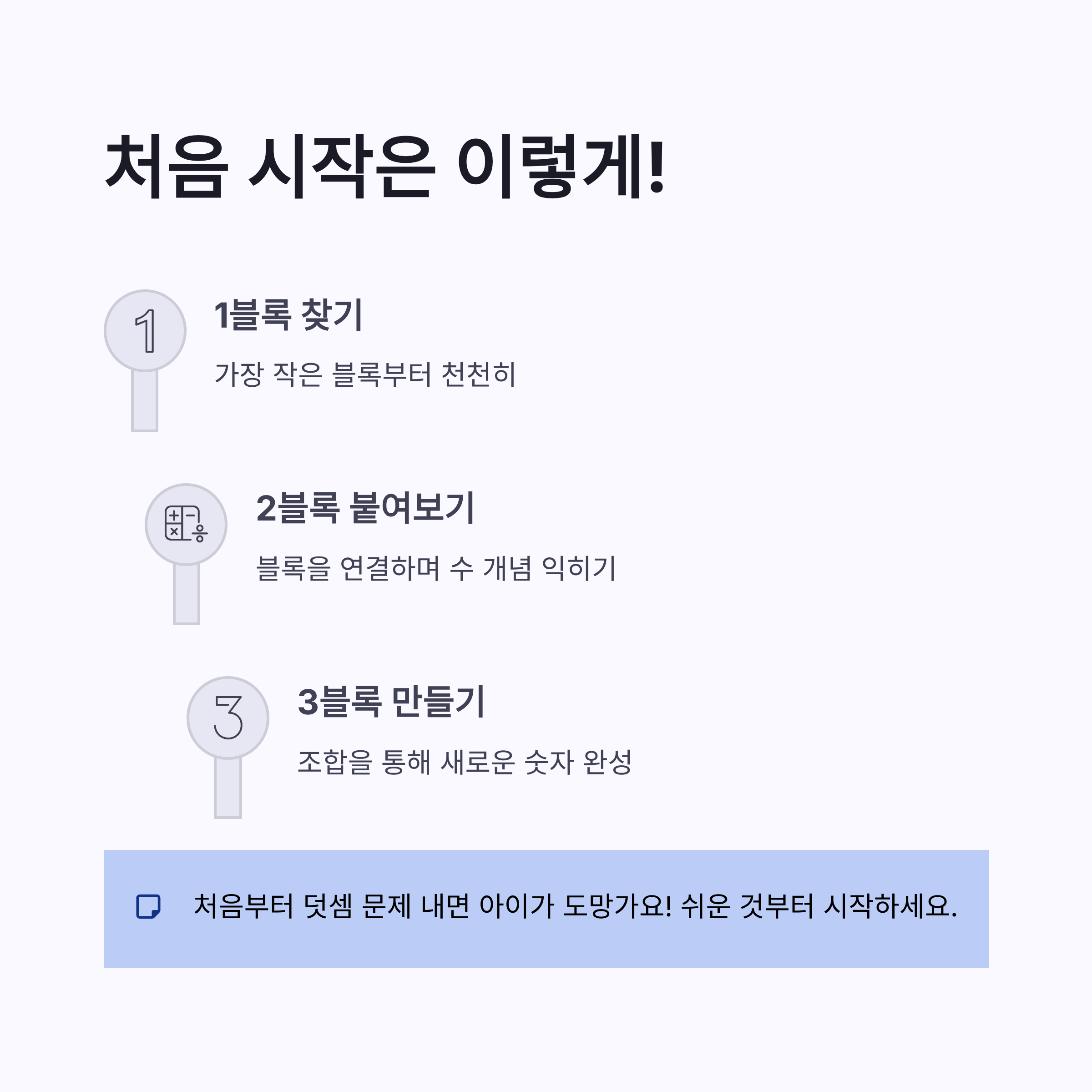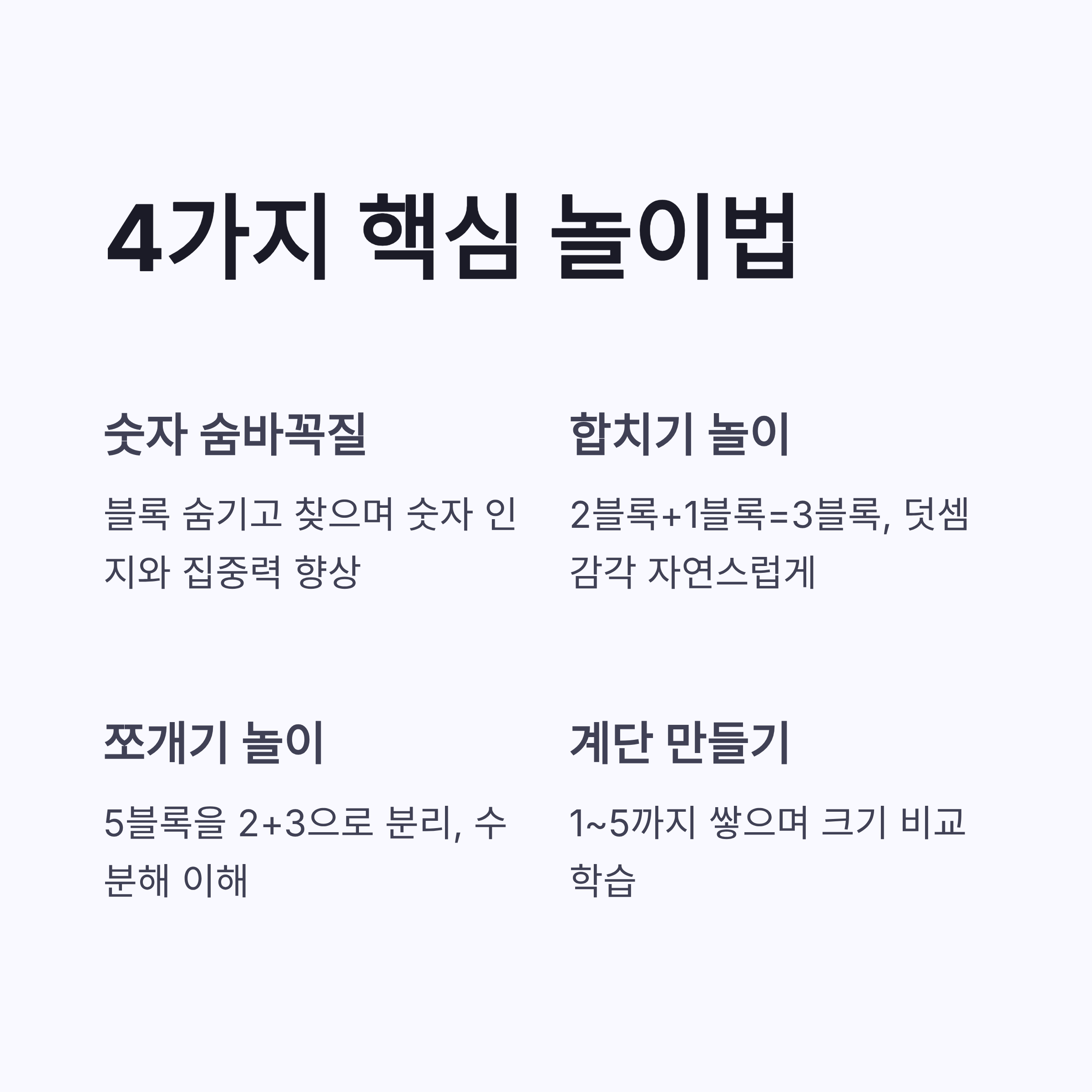 | 숫자 숨바꼭질 | 블록 3개 숨기고 “3 찾아줘” | 숫자 인지, 집중 |