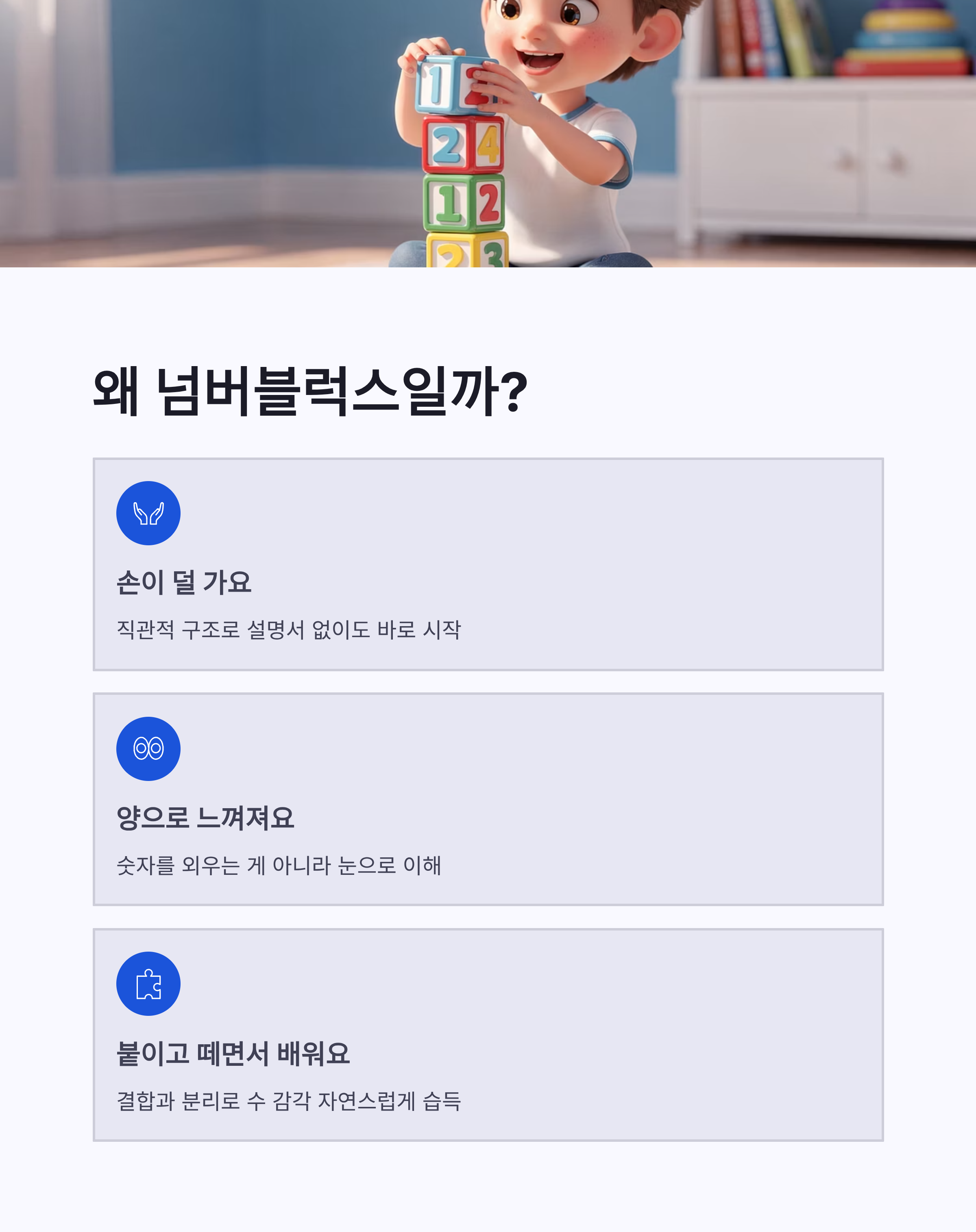 요즘 부모들 사이에서 넘버블럭스 스마트블럭 같은 블록 교구가 인기인 이유가 있더라구요. 영상만 보는 것보다 손으로 만지고 조립하면서 숫자 감각이 훨씬 빨리 붙는 느낌? 다만 장단점은 분명해요.