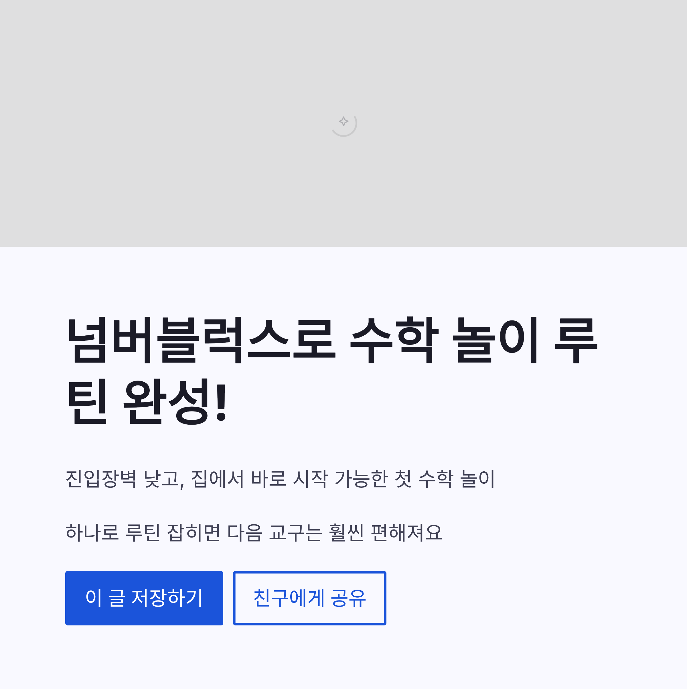 정리하면 넘버블럭스 스마트블럭은 “아이 첫 수학 놀이”에 진입장벽이 낮고, 집에서 바로 굴릴 수 있는 게 제일 좋았어요. 오늘은 1~3만, 내일은 4~5만… 이런 식으로 쪼개서 가면 아이가 지치지 않아요. 너무 잘 가르치려고 애쓰기보다, 매일 10분이라도 웃으면서 끝내는 게 오래가더라구요 ㅎㅎ 넘버블럭스 스마트블럭 하나로 유아 수학 놀이 루틴이 잡히면, 그 다음 교구는 훨씬 편해져요.