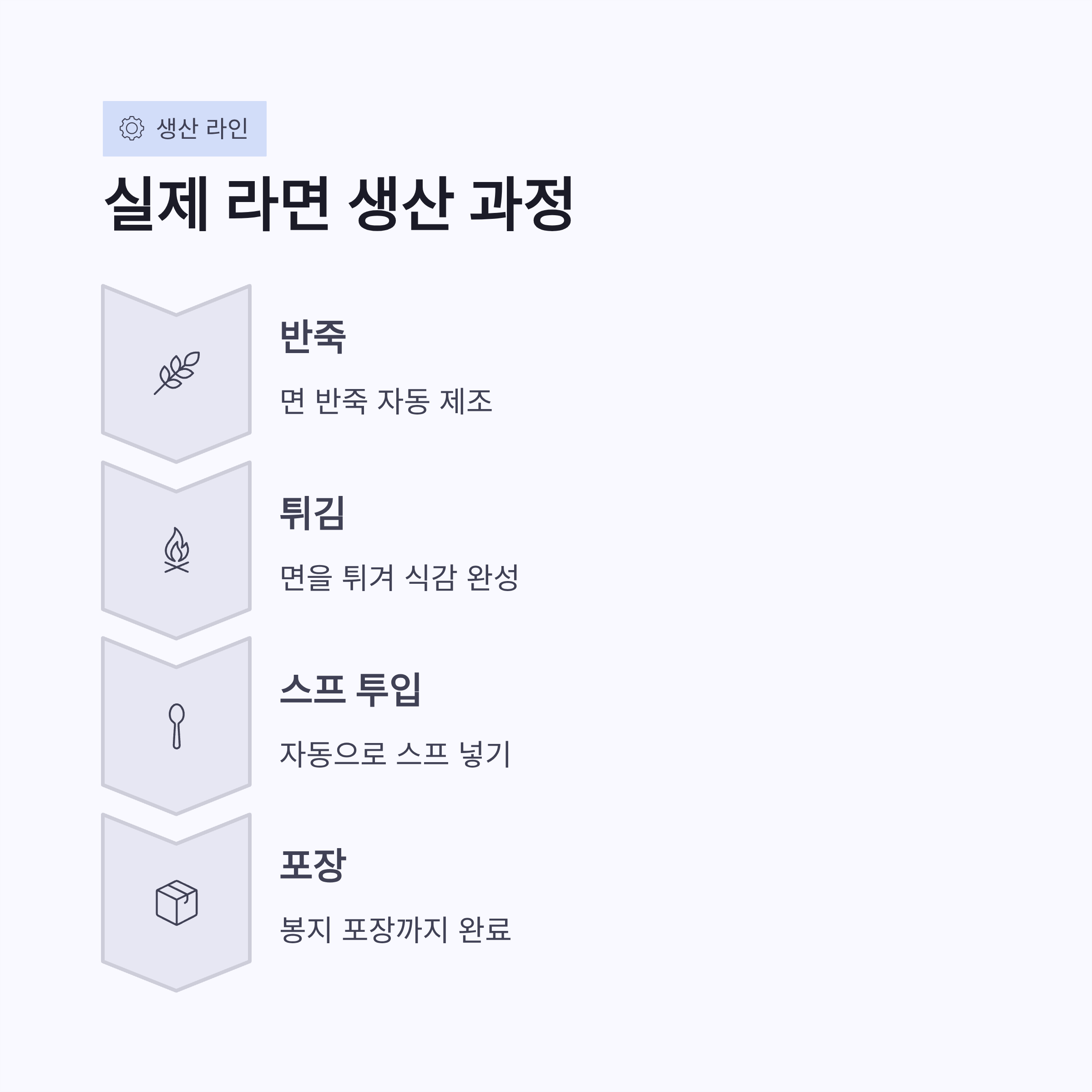 | 주요 공정 | 면 생산·스프 투입·포장 | 전 과정 자동화 |