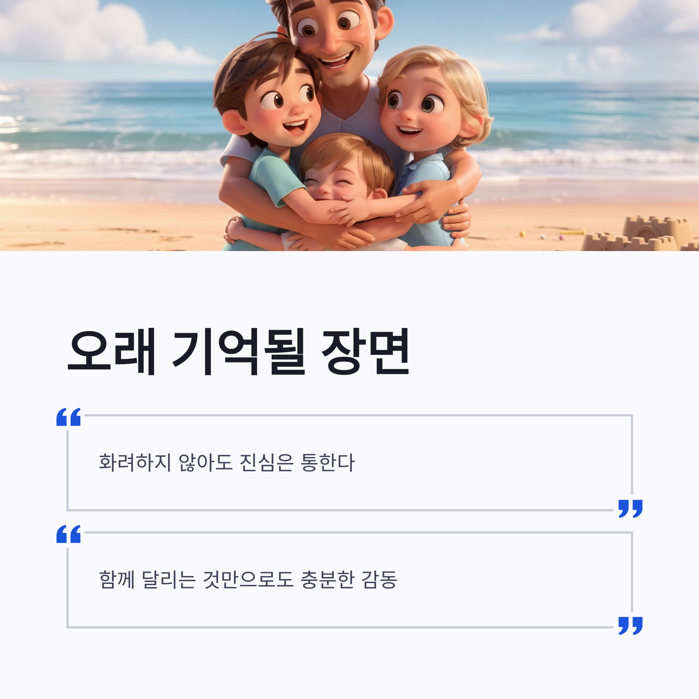 결론적으로 마라톤에서 함께 달린 부자 션과 하율의 모습은 오래 남을 것 같아요. 화제성보단 잔잔한 여운. 이런 예능, 개인적으로 계속 보고 싶네요 ㅎㅎ 다음 시즌에서도 이런 가족 이야기 또 나왔으면 좋겠구요. 여러분은 이 장면 보면서 어떤 느낌 들었나요? 괜히 마음 몽글해지지 않던가요?