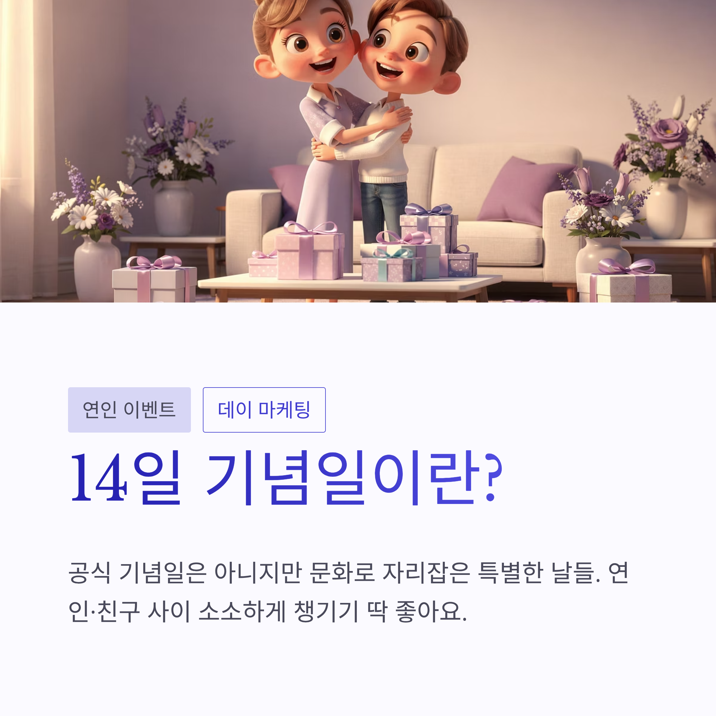 매달 14일 기념일은 사실 공식 기념일이라기보단 문화처럼 굳어진 날이에요. 그래도 의미를 알고 나면 그냥 지나치기 아쉬워지더라구요. 특히 연인 사이에서는 “이런 날이래~” 하면서 소소하게 챙기기 좋았어요.