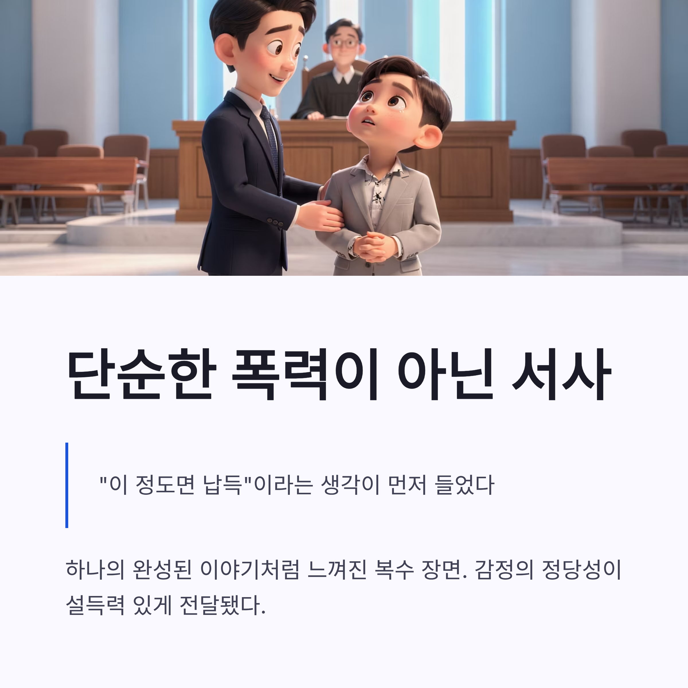 | 복수 방식 | 즉흥 아님, 치밀한 설계 |