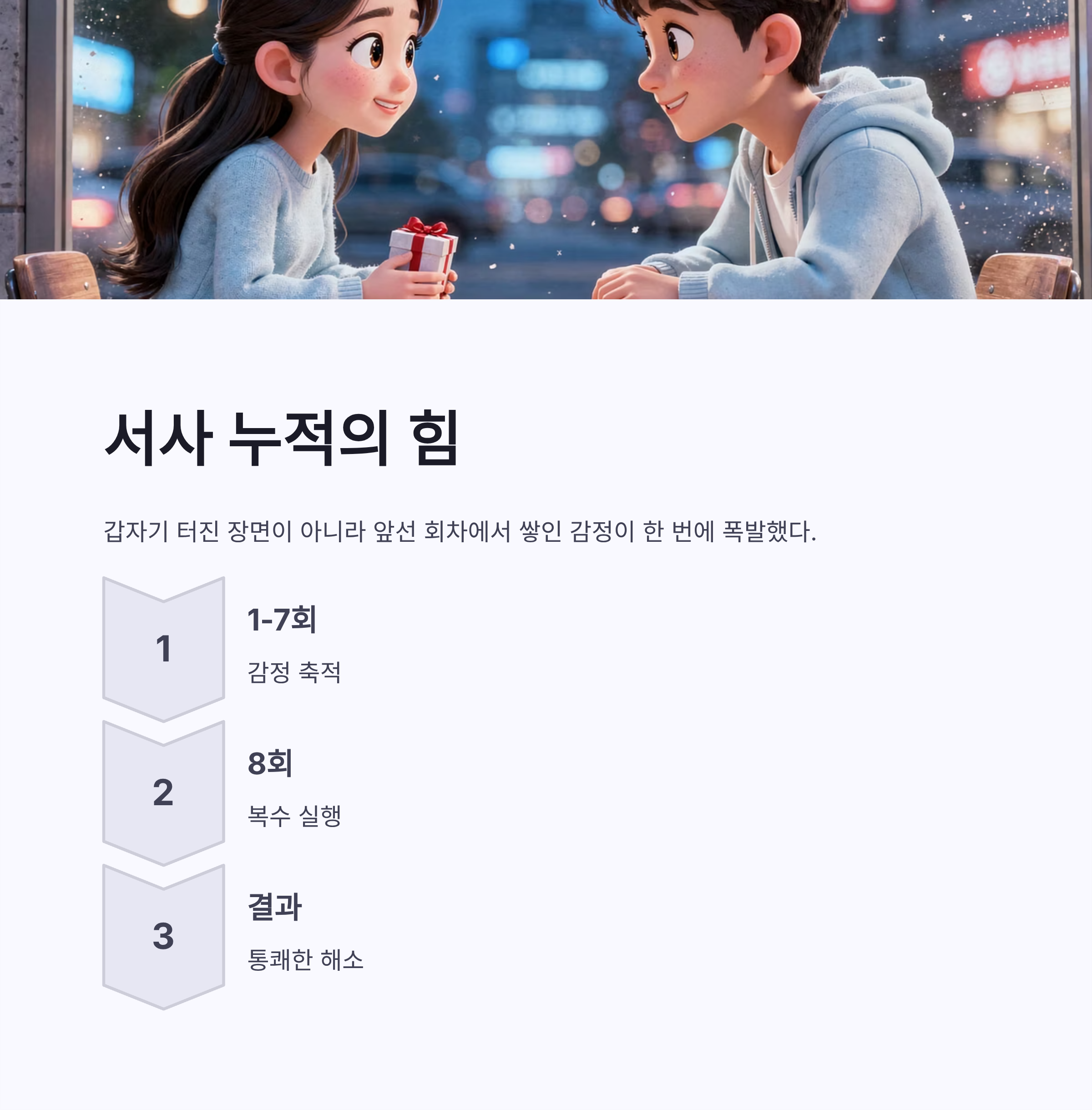 이번 모범택시3 8회 김도기 생매장 복수를 보면서 저도 모르게 “아… 드디어”라는 말이 나오더라구요. 갑자기 터진 장면이 아니라, 앞선 회차에서 차곡차곡 쌓인 감정이 한 번에 터진 느낌이었거든요. 억울함, 분노, 무력감 같은 감정들이 계속 눌려 있다가 이번 회차에서 정리되니 속이 좀 시원해졌습니다. 특히 김도기 캐릭터가 감정을 드러내지 않고 버텨온 시간이 길었기 때문에, 이 복수 장면이 더 묵직하게 다가왔던 것 같아요. 그냥 센 장면이 아니라 “이럴 수밖에 없었구나…” 하고 납득하게 만드는 흐름이랄까요. 솔직히 보면서 심장이 쿵 내려앉는 순간도 있었구요 ㅠㅠ