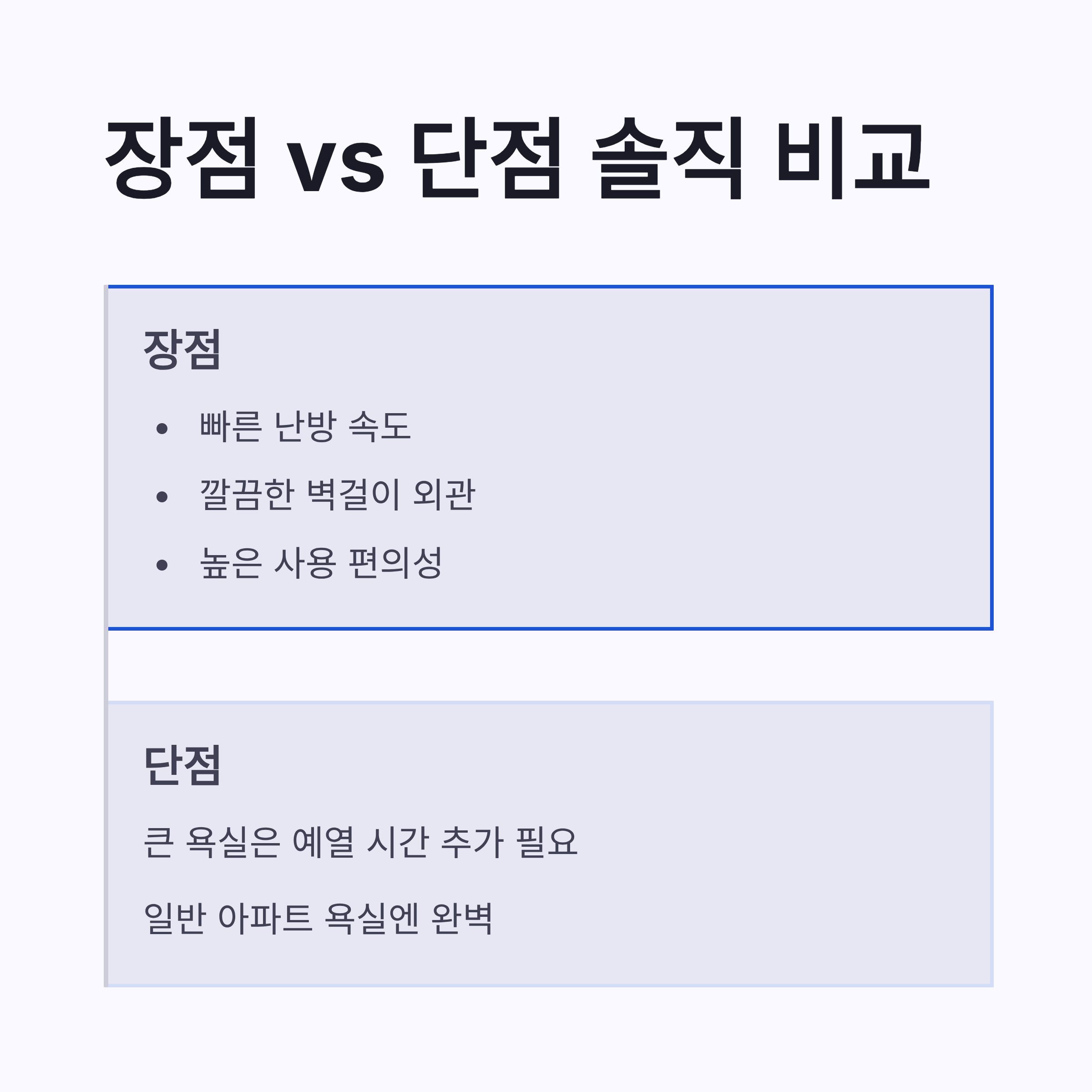 설치 과정도 생각보다 부담 없었어요. 벽걸이 방식이라 바닥 공간 그대로 쓰고, 물 튈 걱정도 덜하더라구요. 실제로 써보면서 느낀 장단점을 표로 정리해봤어요.