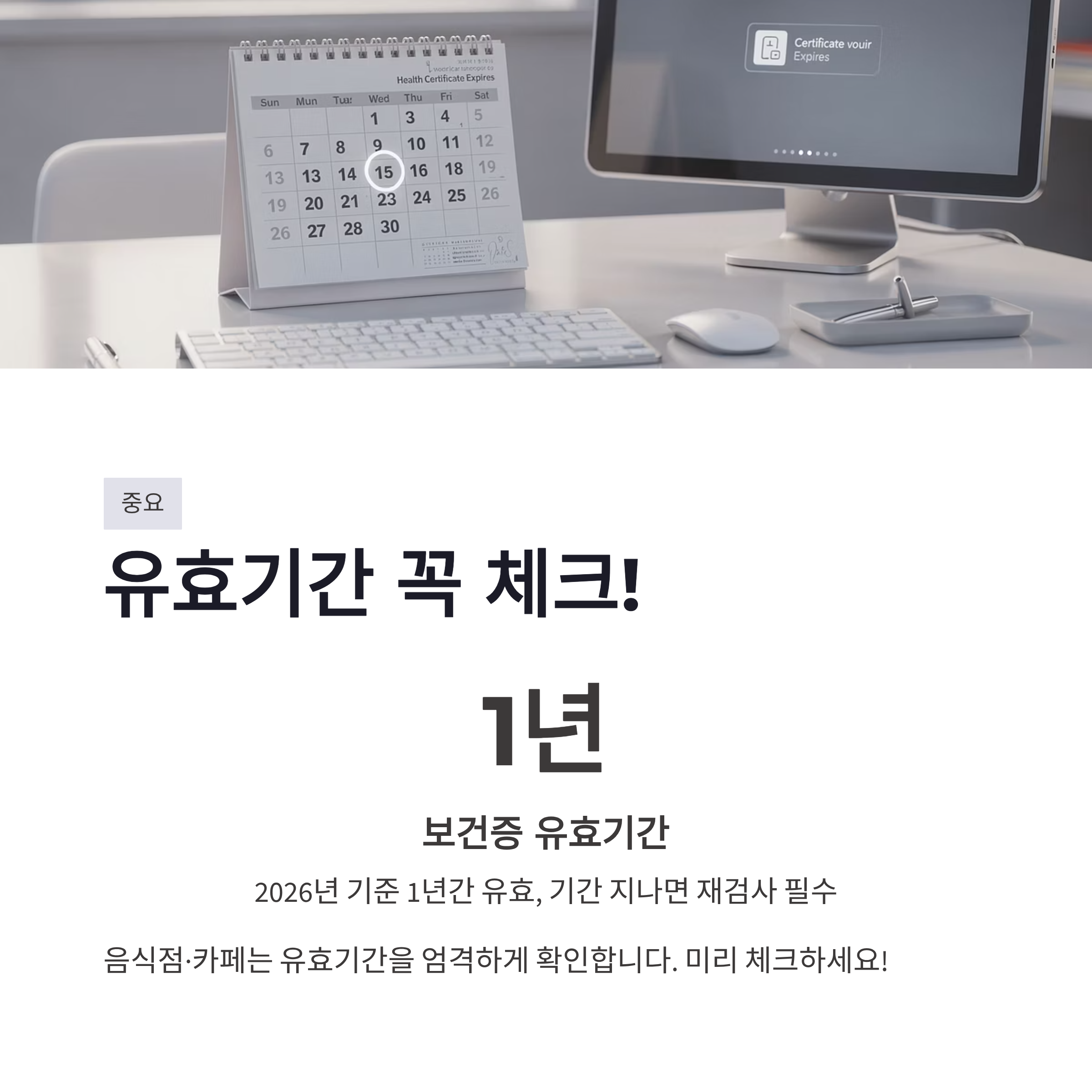 2026년 현재 보건증 유효기간은 1년입니다. 이거 진짜 자주 놓치게 되는데요, 저도 예전에 기간 지난 보건증 냈다가 다시 검사받은 적 있었어요…ㅠㅠ 음식점·카페 쪽은 특히 유효기간 체크를 엄청 꼼꼼하게 봅니다. 보건증 인터넷 발급 기준에서 느낀 장단점도 정리해보면 이렇더라구요.