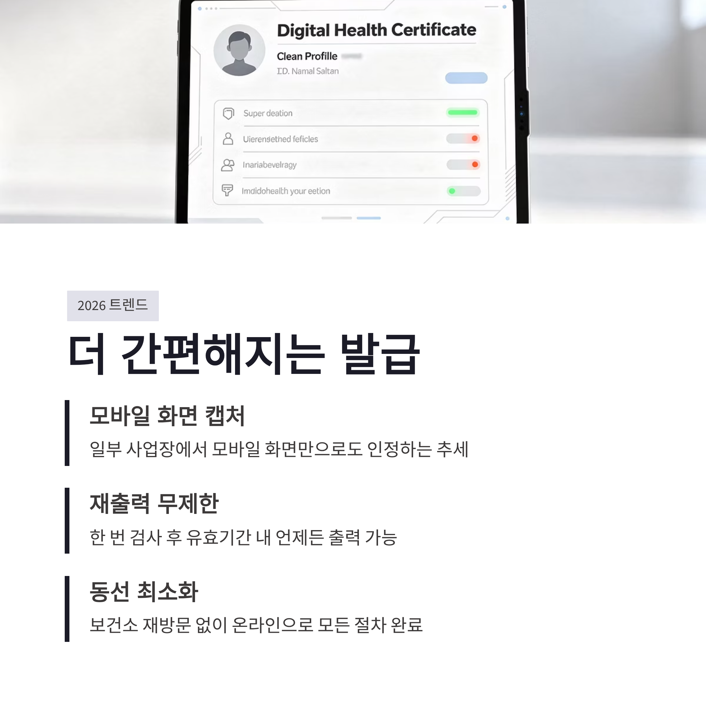 그래도 종합적으로 보면 보건증 인터넷 발급 덕분에 예전처럼 보건소 다시 왔다 갔다 할 일은 거의 없어졌습니다. 요즘은 모바일 화면 캡처만 요구하는 곳도 슬슬 늘어나는 분위기라, 더 간편해질 것 같다는 느낌도 들었구요.