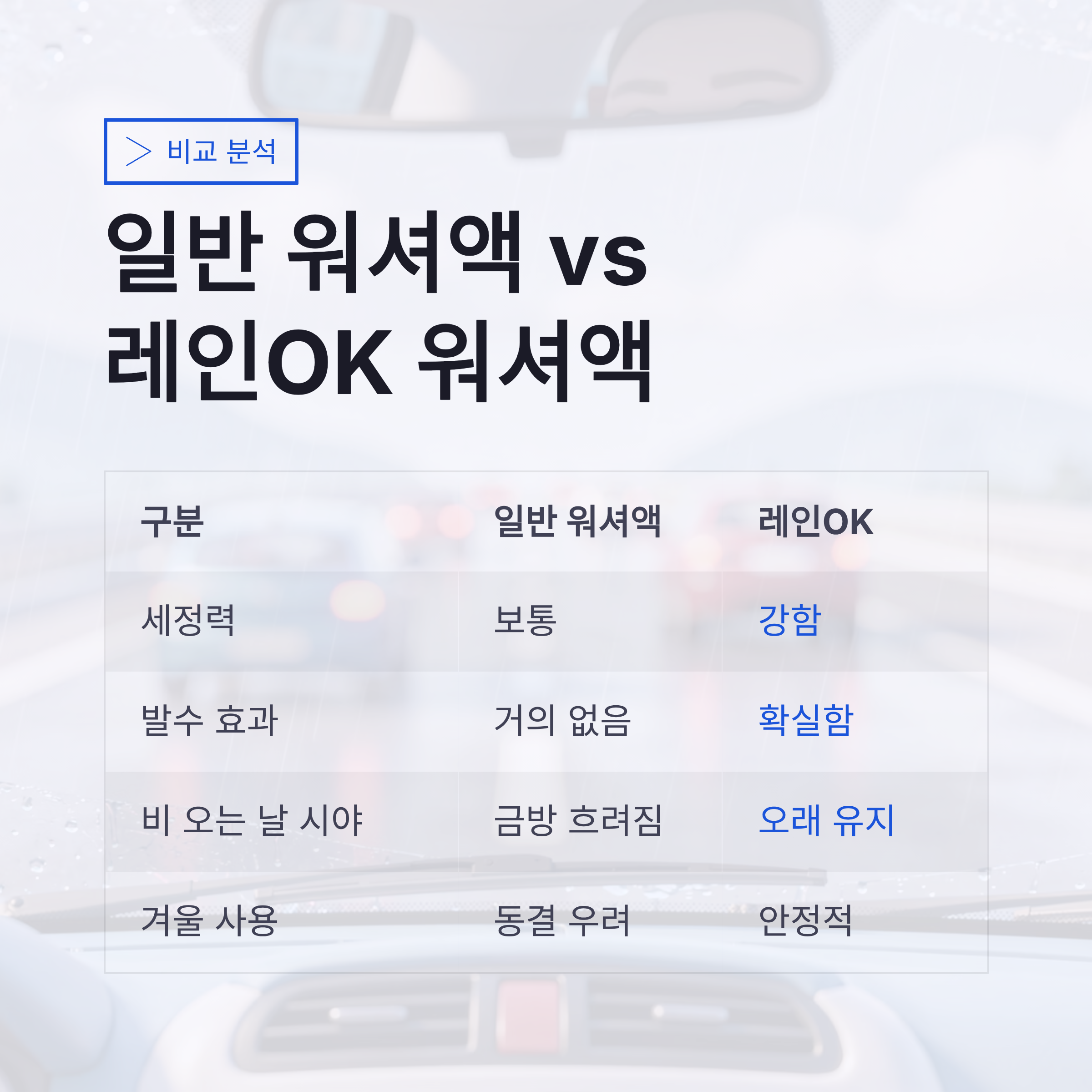 | 구분 | 일반 워셔액 | 불스원 레인OK 워셔액 |
