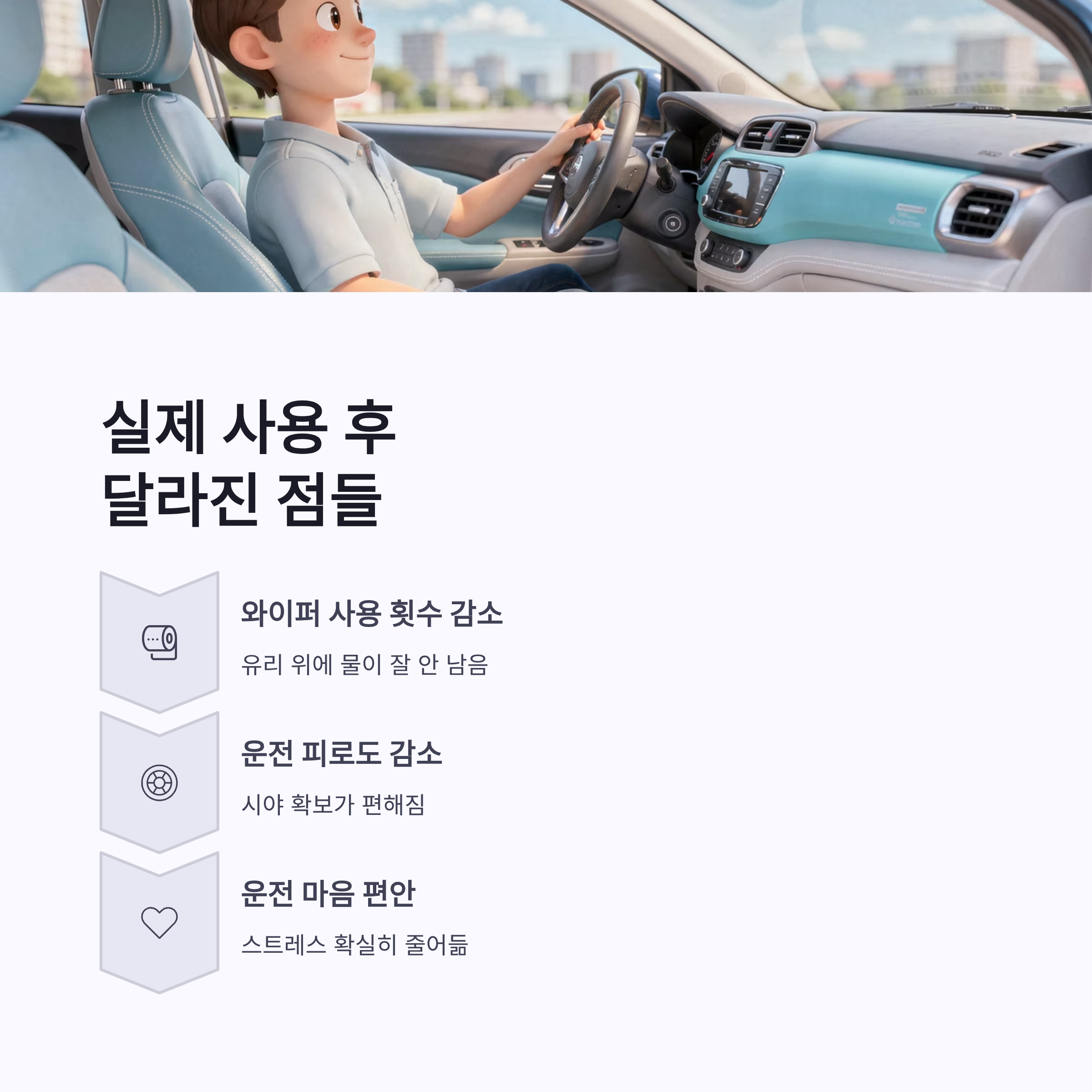 운전하다 보면 불스원 레인OK 워셔액 생각 안 날 수가 없더라구요. 비 오는 날, 흙먼지 날리는 날, 앞유리 닦아도 뿌옇게 남는 그 느낌… 아 진짜 답답했거든요. 그래서 불스원 레인OK 워셔액으로 바꿔봤는데, 이게 생각보다 체감이 확 와서 좀 놀랐어요. 그냥 닦이는 게 아니라, 유리 위에 막이 한 겹 씌워진 느낌이랄까. 빗물이 맺히질 않고 또르르 흘러내리더라구요. 특히 고속도로에서 시야가 또렷해지는 게 제일 컸어요. 괜히 다들 불스원 레인OK 워셔액 찾는 게 아니었구나 싶었구요. 솔직히 이 정도면 기본 관리템이라고 봐도 될 듯했어요.