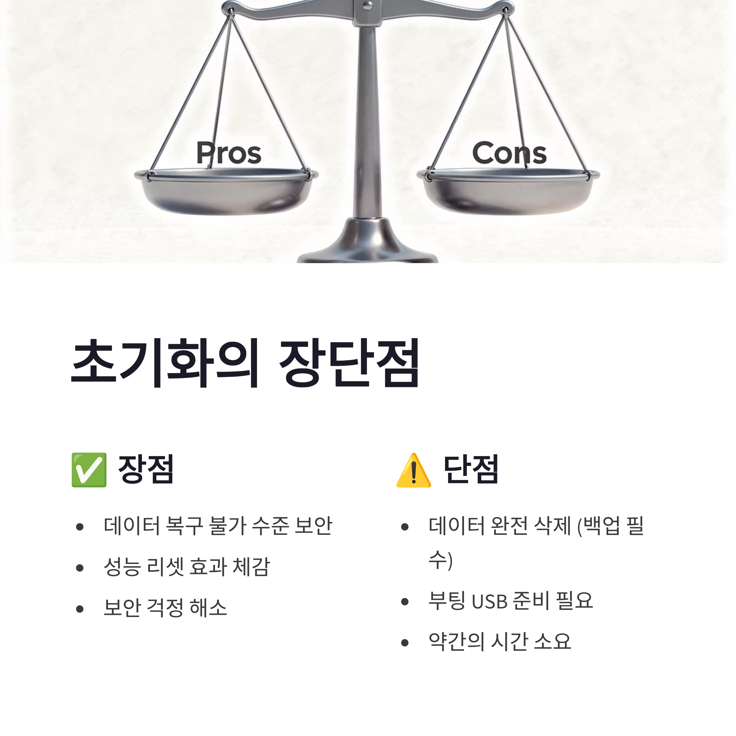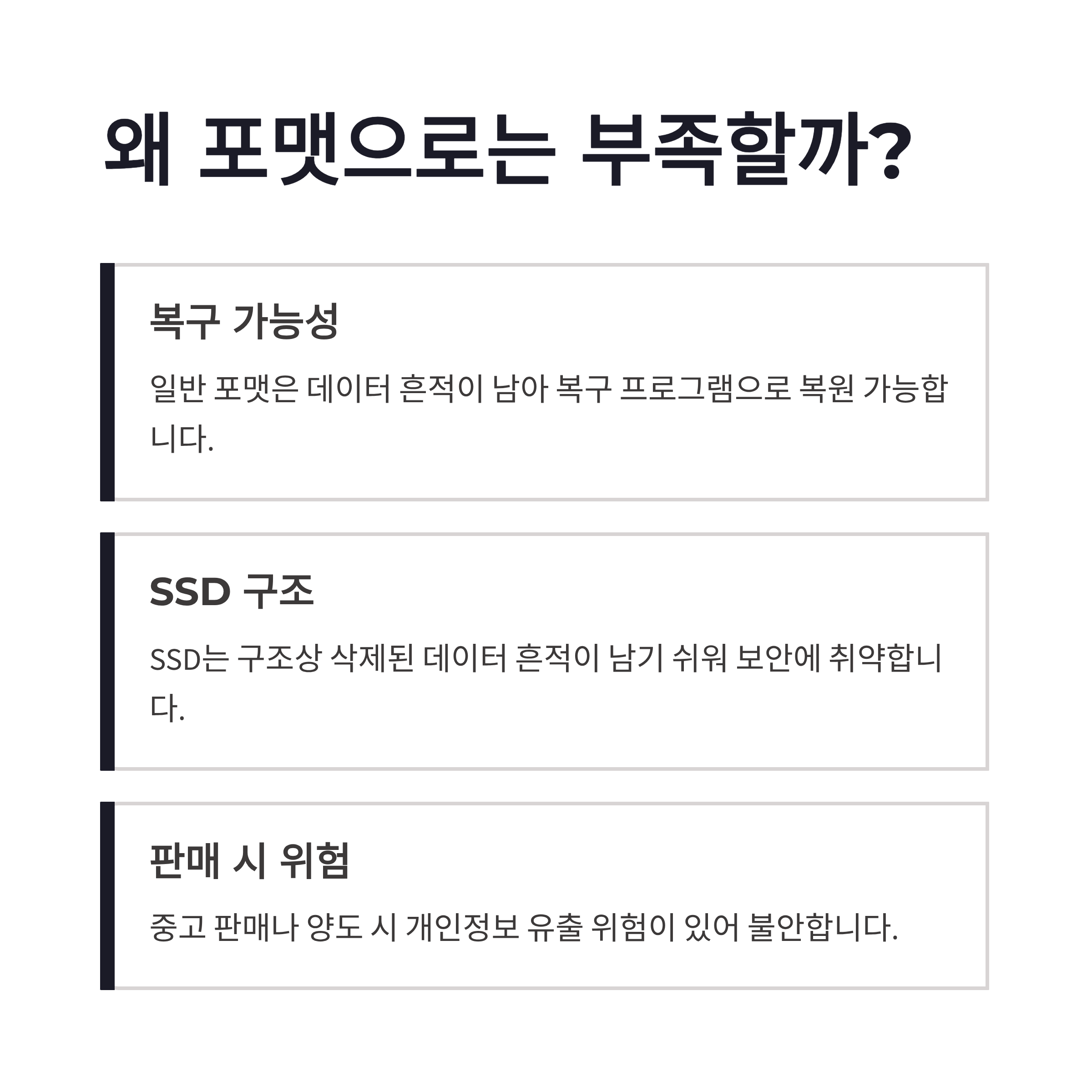 * 데이터 복구 불가 수준 * 성능 리셋 효과 체감 * 보안 걱정 ↓