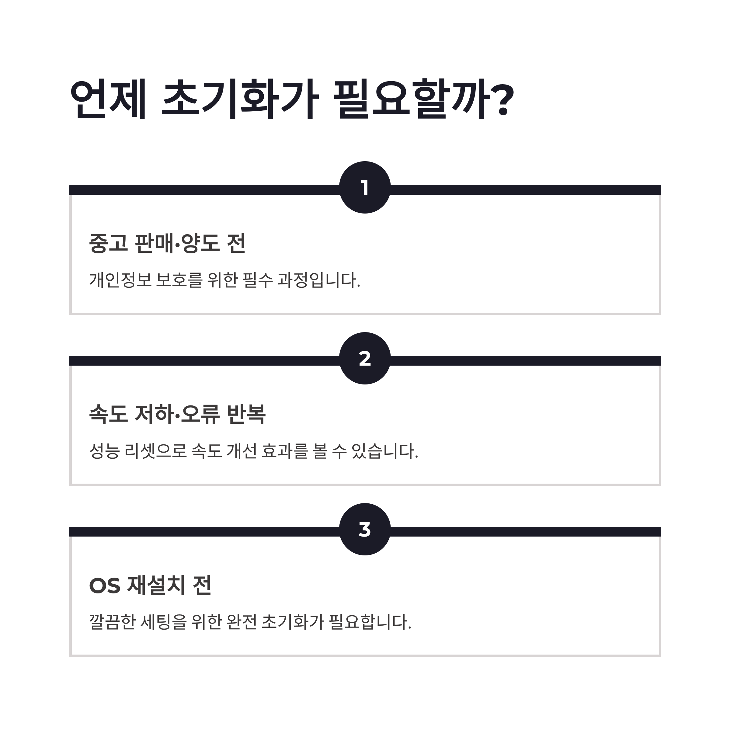* 중고 판매 / 양도 전 * 속도 저하, 오류 반복될 때 * OS 재설치 전 깔끔한 세팅
