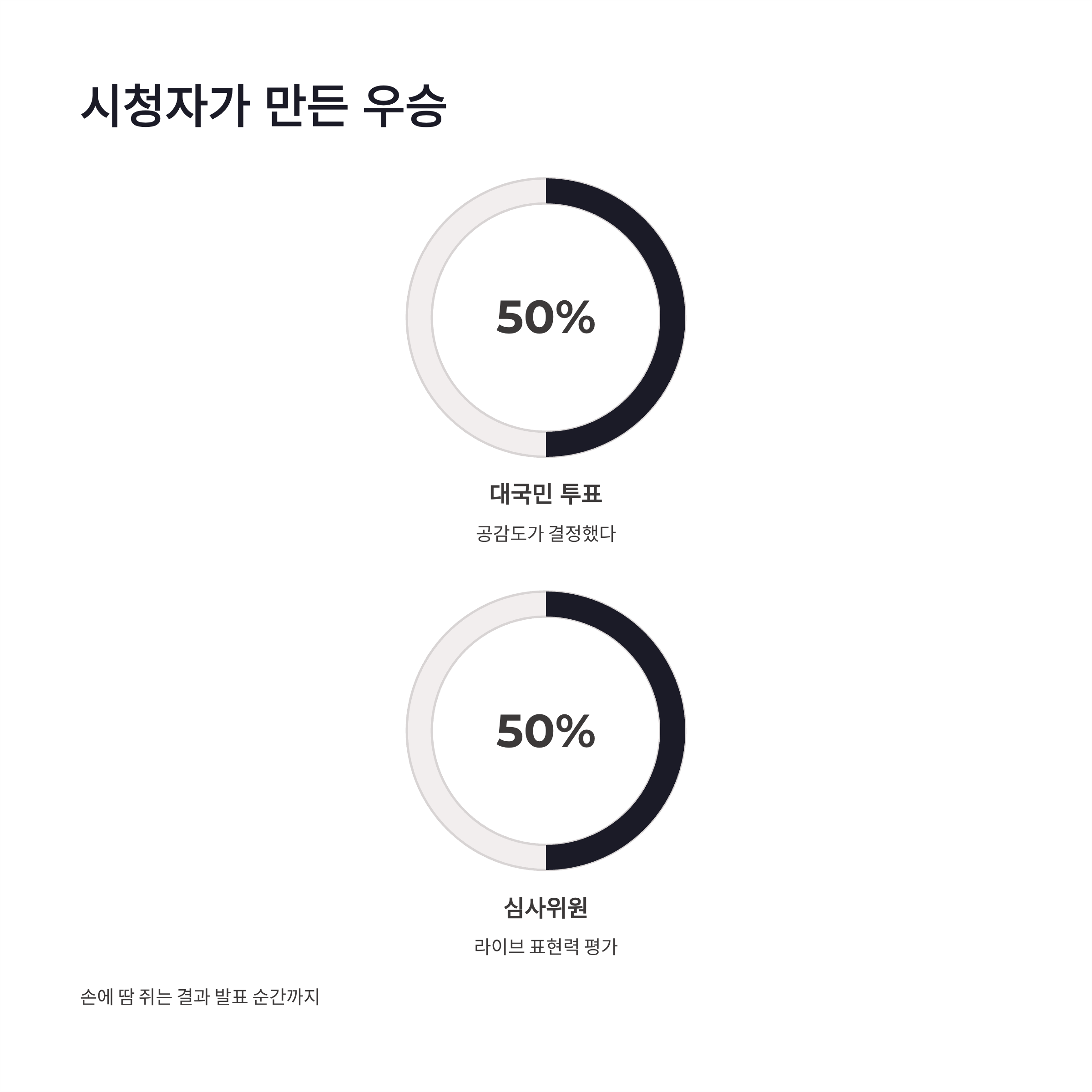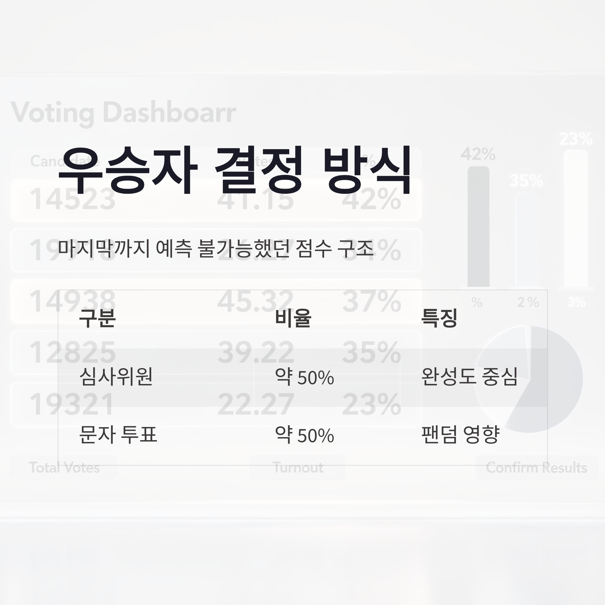 | 대국민 문자 투표 | 약 50% | 팬덤·공감도 영향 큼 |