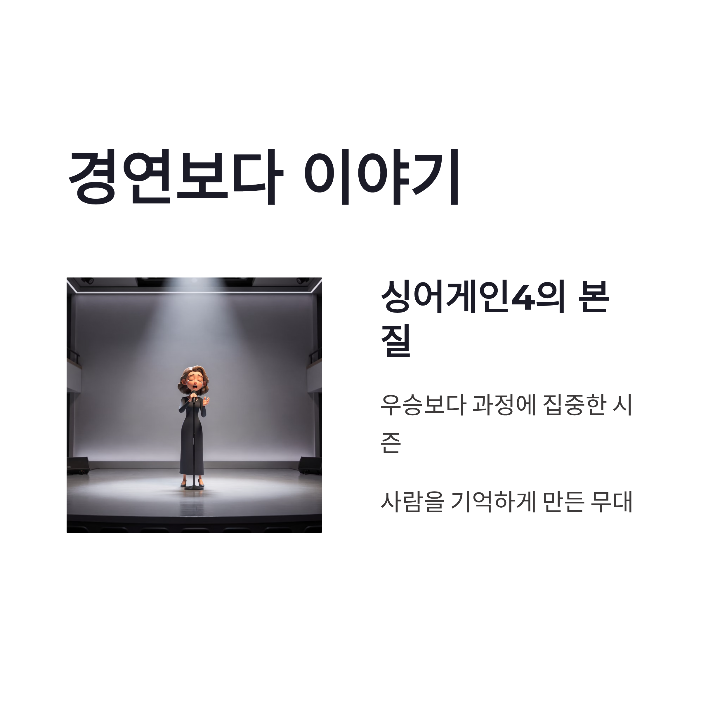 솔직히 말해서 싱어게인4 결승전은 시작부터 심장이 너무 바빴어요. “아 이제 끝이구나…” 싶은데 또 무대 나오면 눈물날 것 같고요ㅠㅠ. 싱어게인4는 이름 없는 가수들이 다시 무대에 설 수 있다는 그 취지 자체가 너무 강력해서, 시즌 내내 몰입도가 장난 아니었죠. 특히 결승 무대는 그냥 노래 대결이 아니라 각자의 인생 요약본 같더라구요. 음정 조금 흔들려도, 기교가 과해도 다 이해가 되는 순간이었어요. 그만큼 싱어게인4 결승은 감정이 앞서는 무대였고, 보는 나도 같이 떨렸습니다. 진짜 이건 TV 앞에서 혼잣말 나오는 방송이었어요 ㅋㅋ 싱어게인4가 왜 이렇게 오래 회자되는지 알겠더라구요.