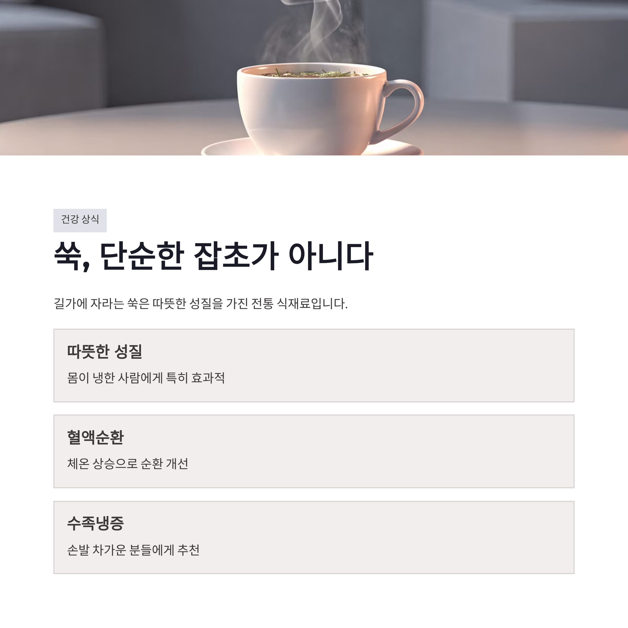 #쑥 #쑥효능 #쑥차 #쑥국 #몸을따뜻하게 #수족냉증 #면역력관리 #간해독 #전통식재료 #환절기건강 #자연식 #여성건강 #건강습관 #2026건강 #식탁위보약