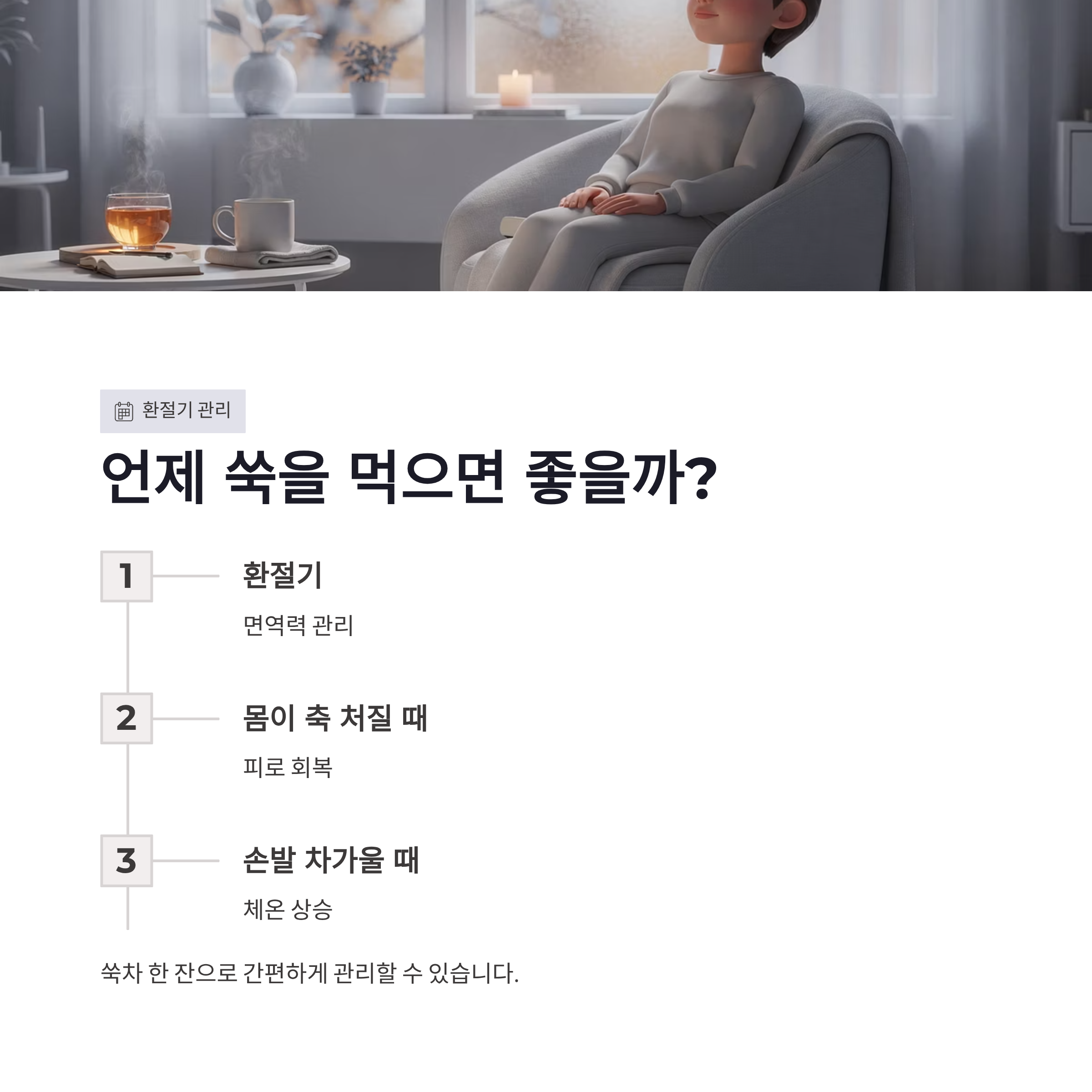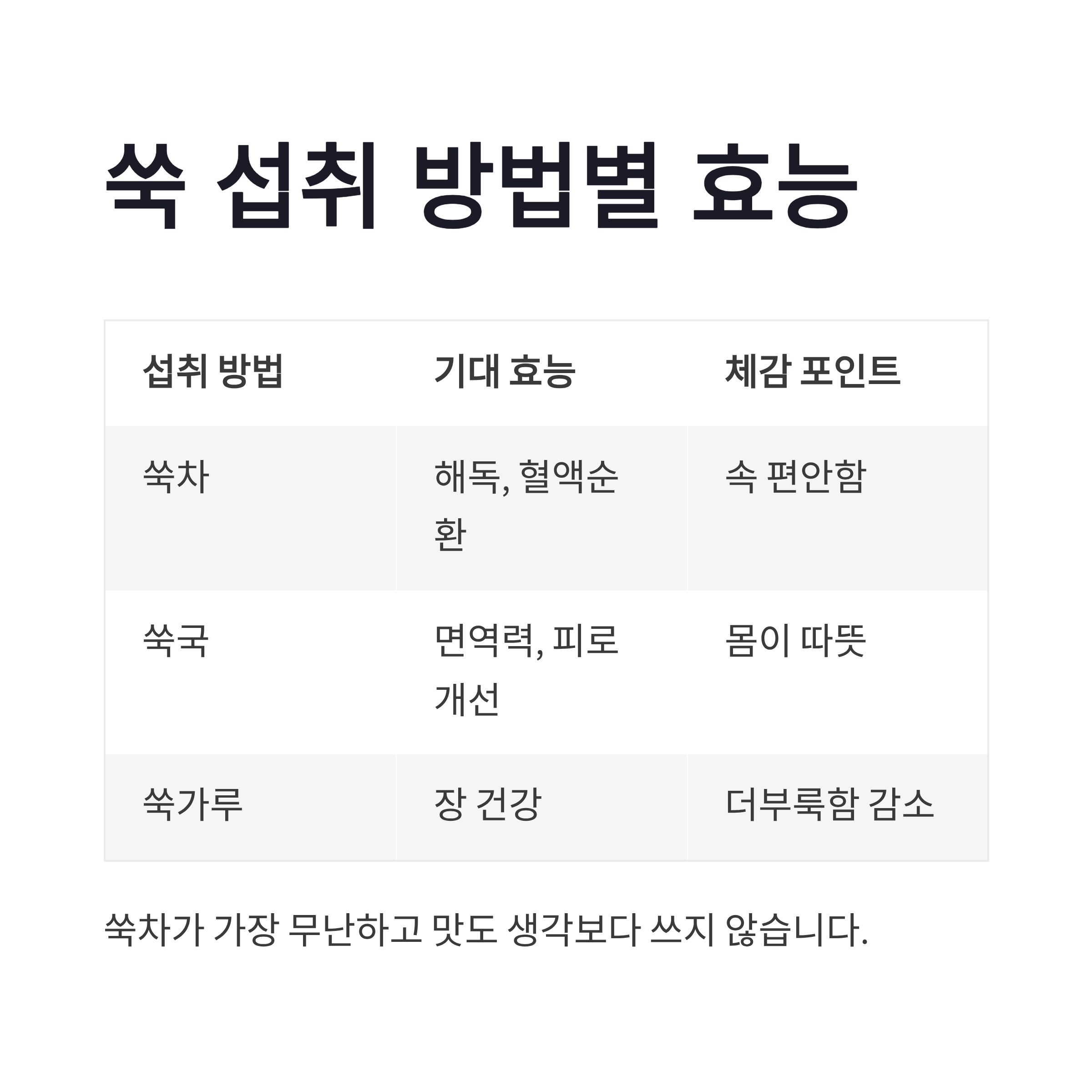 | 쑥 섭취 방법 | 기대되는 쑥 효능 | 체감 포인트 |