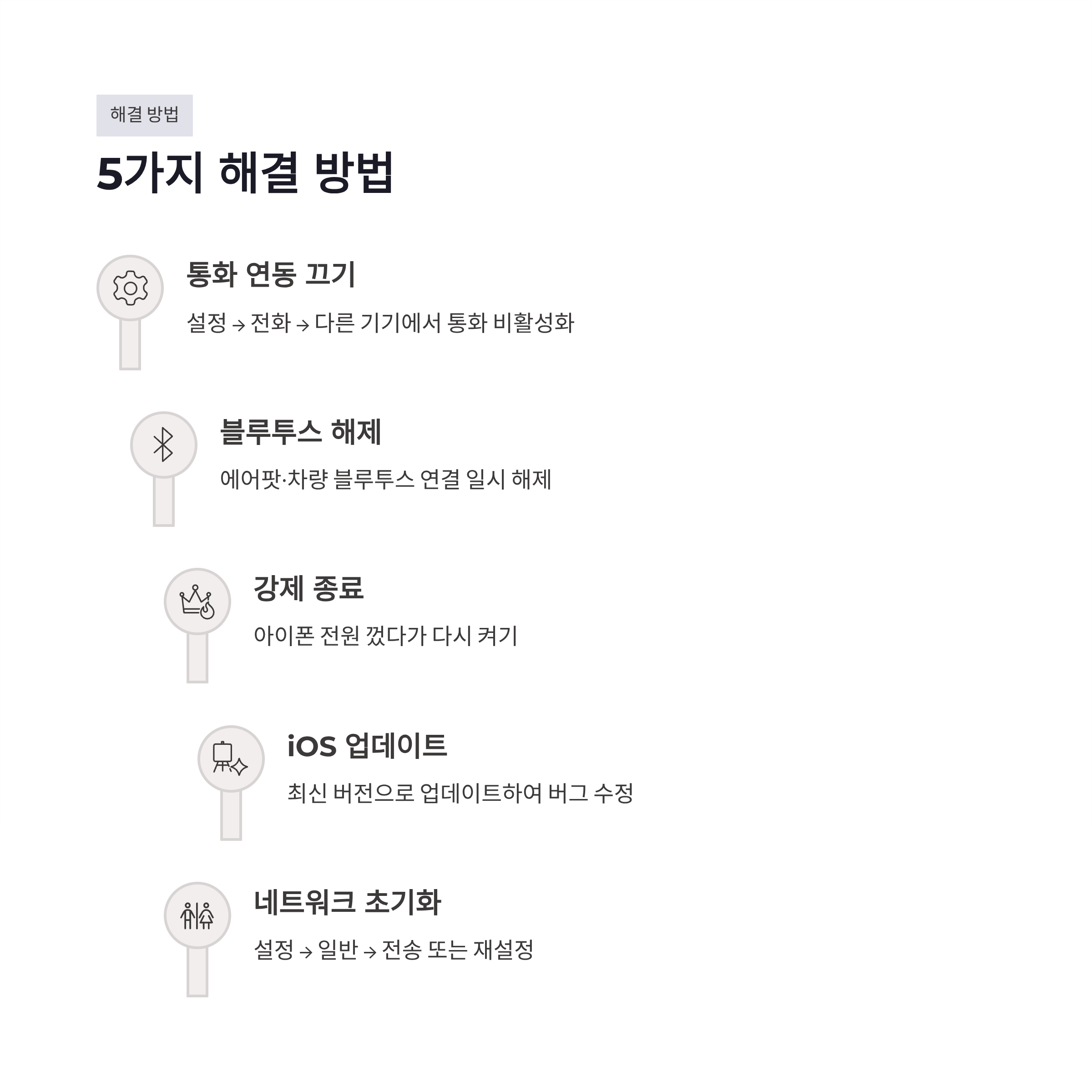 | 네트워크 초기화 | 설정 → 일반 → 전송 또는 재설정 | 마지막 수단 |
