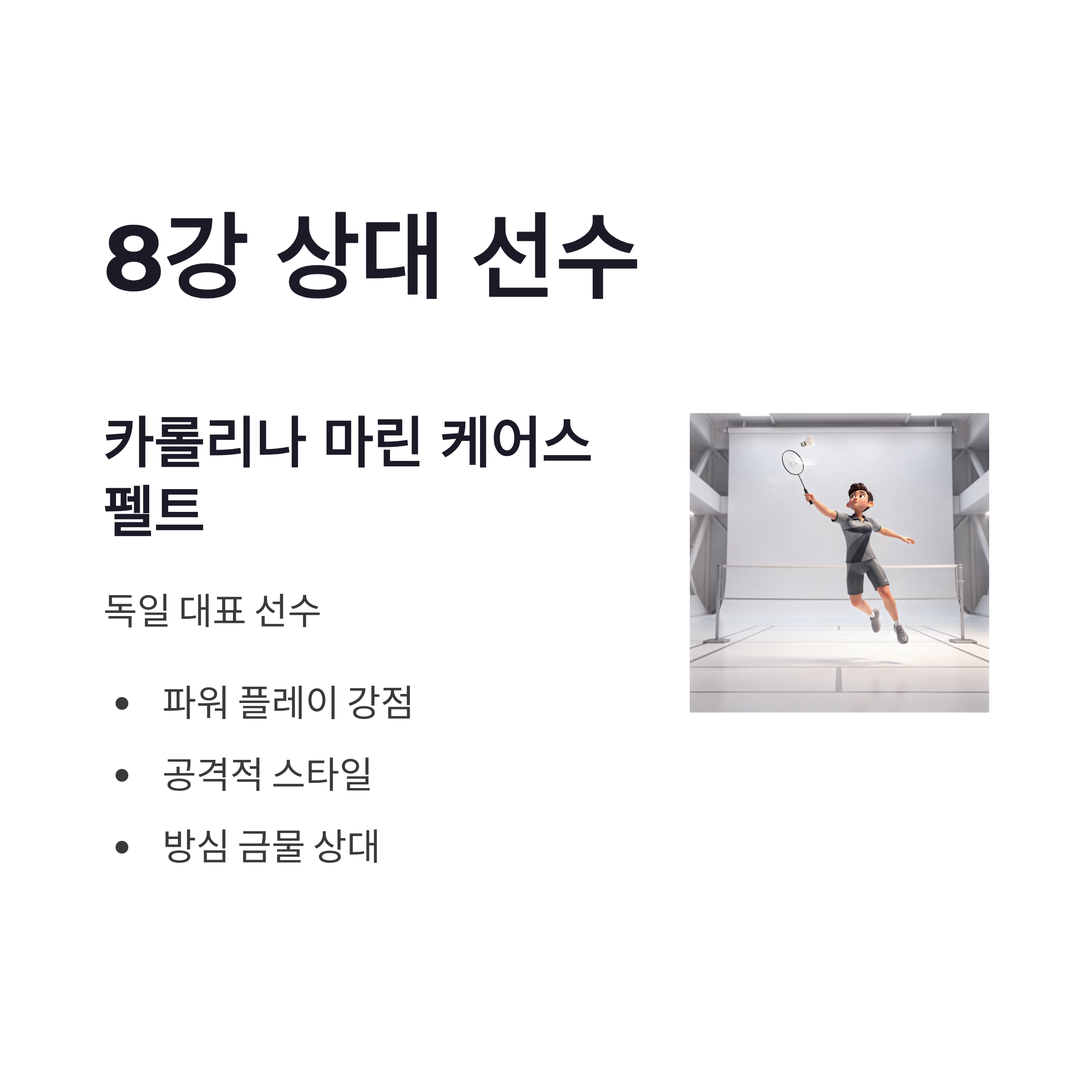 이제 본게임이죠. 안세영 경기중계 일정 시간 기준으로 1월 9일, 말레이시아 오픈 8강전이 예정돼 있습니다. 상대는 독일의 카롤리나 마린 케어스펠트 선수인데요, 파워 있는 플레이가 강점인 선수라 방심은 금물입니다. 그래도 최근 흐름만 보면 안세영 컨디션이 훨씬 안정적이에요.