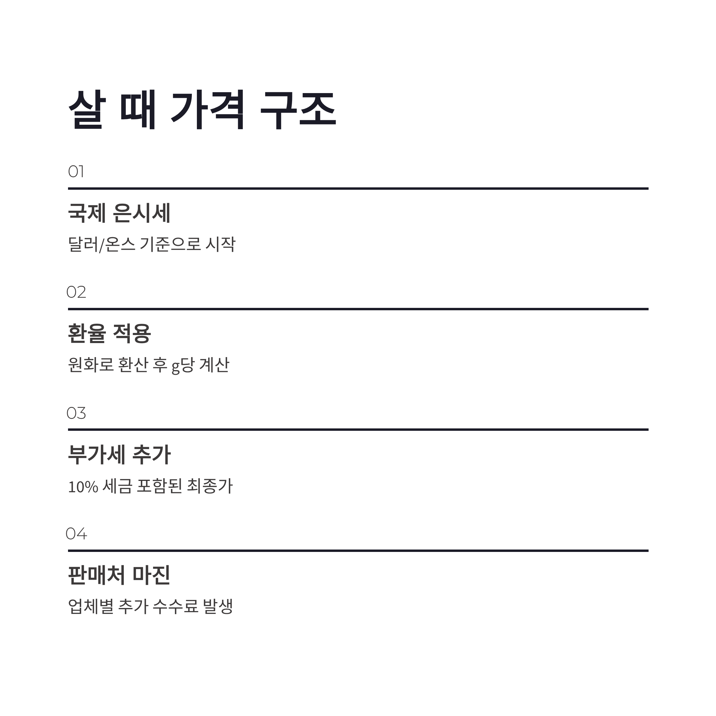 | 실버바 매입가 | 시세 + 부가세 10% |