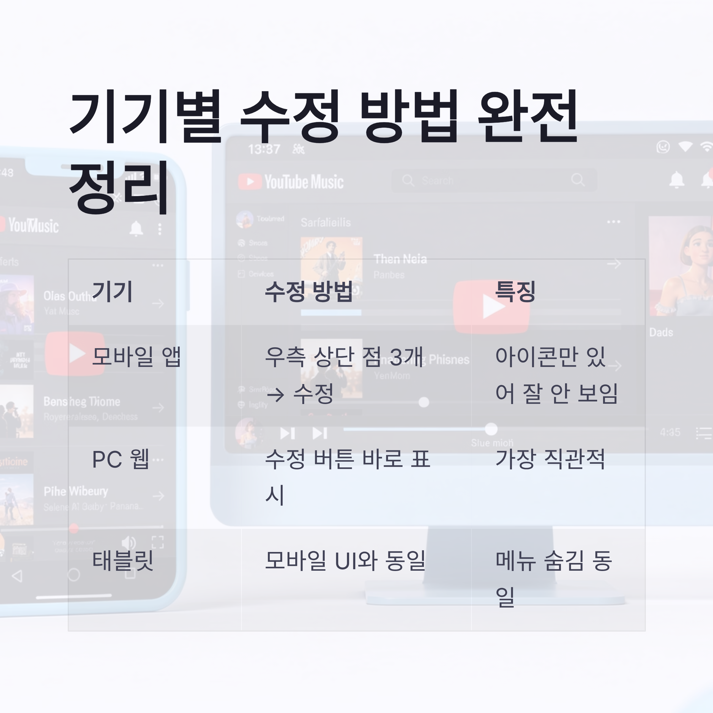 유튜브 뮤직 재생목록 수정 안됨, 기기별 차이 정리