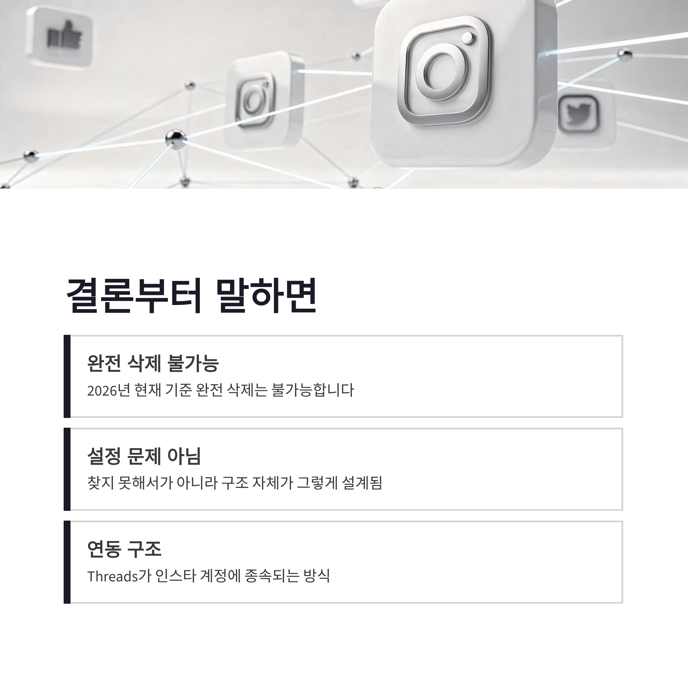 | Threads 계정 완전 삭제 | ❌ | 인스타 연동도 함께 영향 |