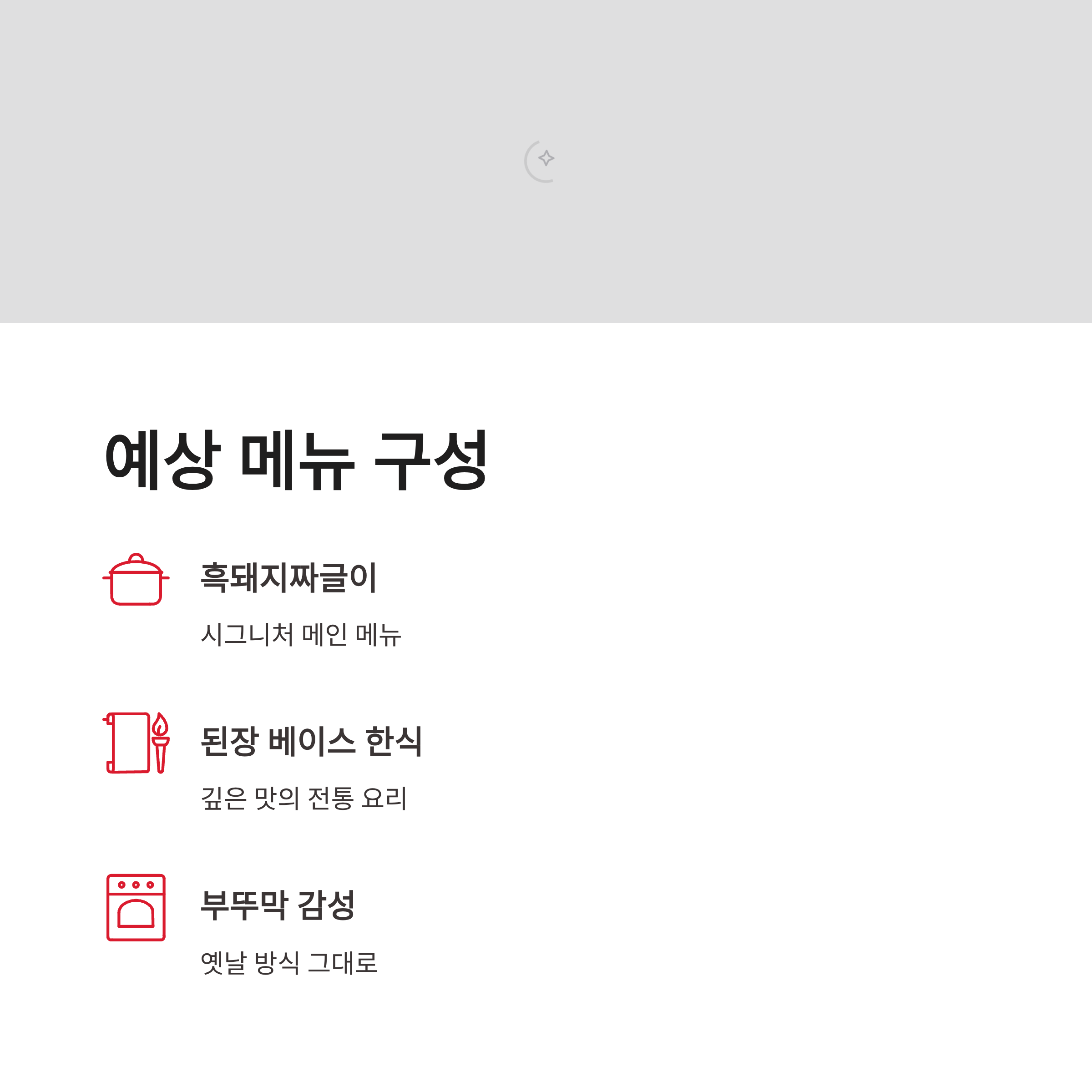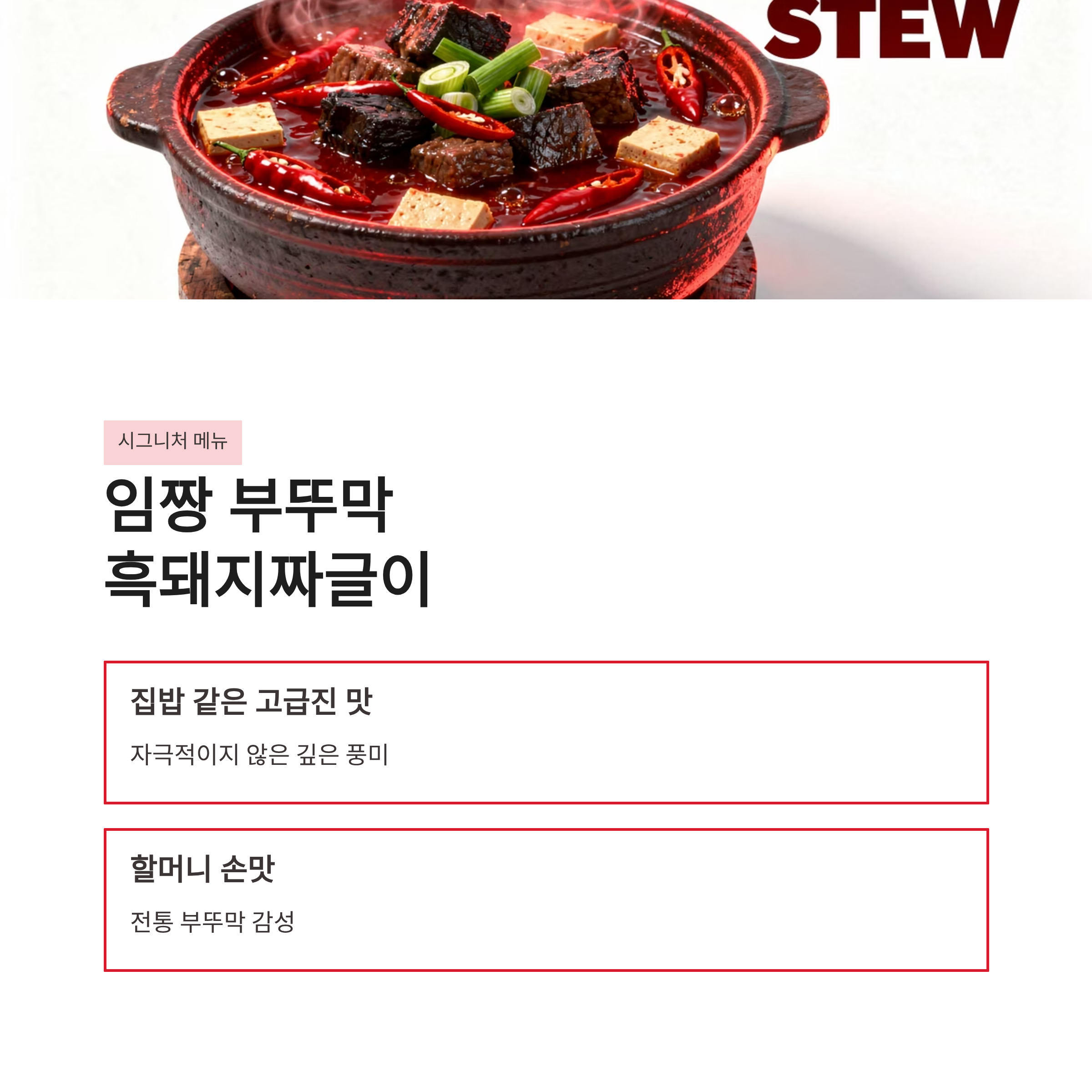 | 예상 메뉴 | 흑돼지짜글이, 된장 베이스 한식 |