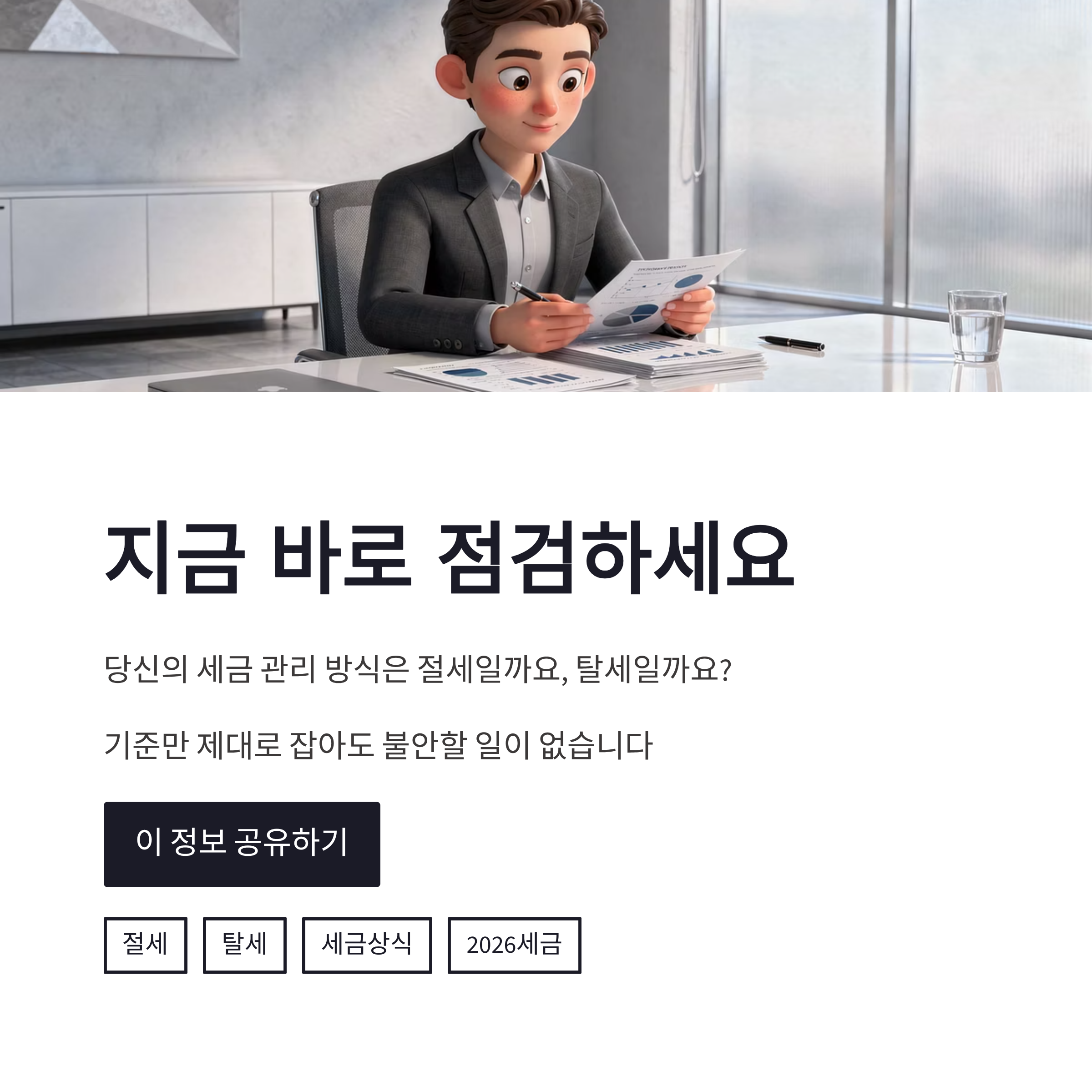 #절세 #탈세 #절세탈세차이 #합법절세 #불법탈세 #세금상식 #세무기초 #국세청 #세금관리 #개인사업자세금 #연말정산 #세액공제 #가산세 #소득신고 #2026세금