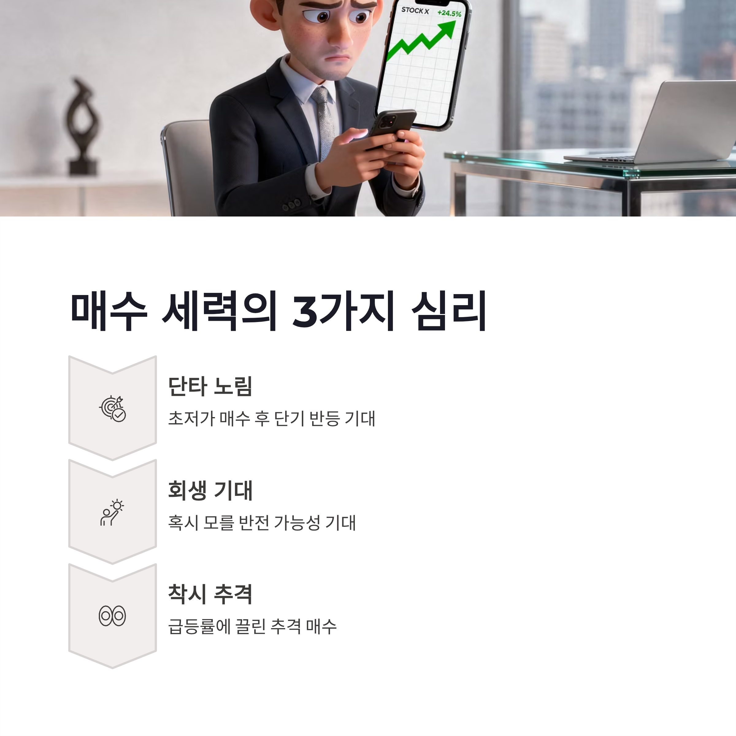 첫째, 초저가 매수 후 단기 반등 노리는 단타 세력. 둘째, 혹시 모를 회생 기대감. 셋째, 착시효과에 따른 추격 매수.