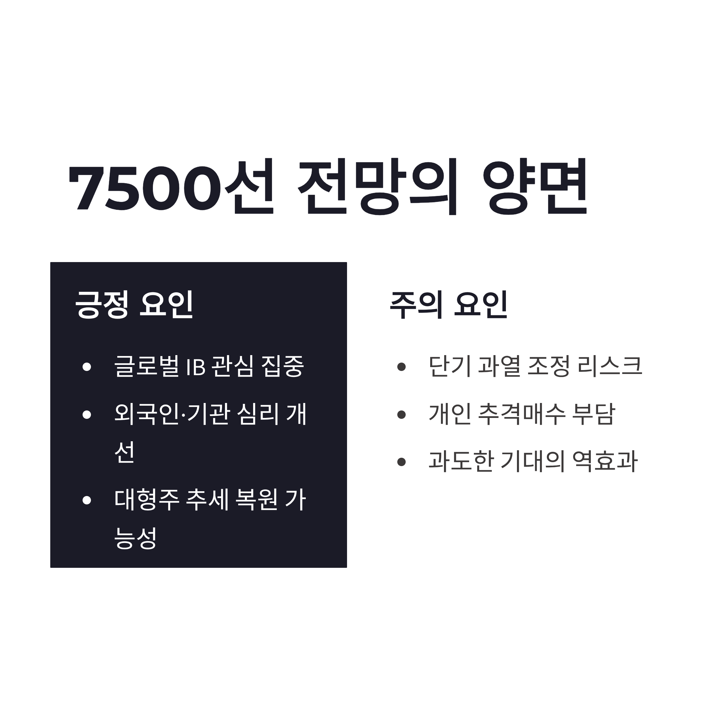 * 단기 과열 시 조정 리스크 * 개인 추격매수 부담 * 기대가 너무 앞서가면 실망도 큼