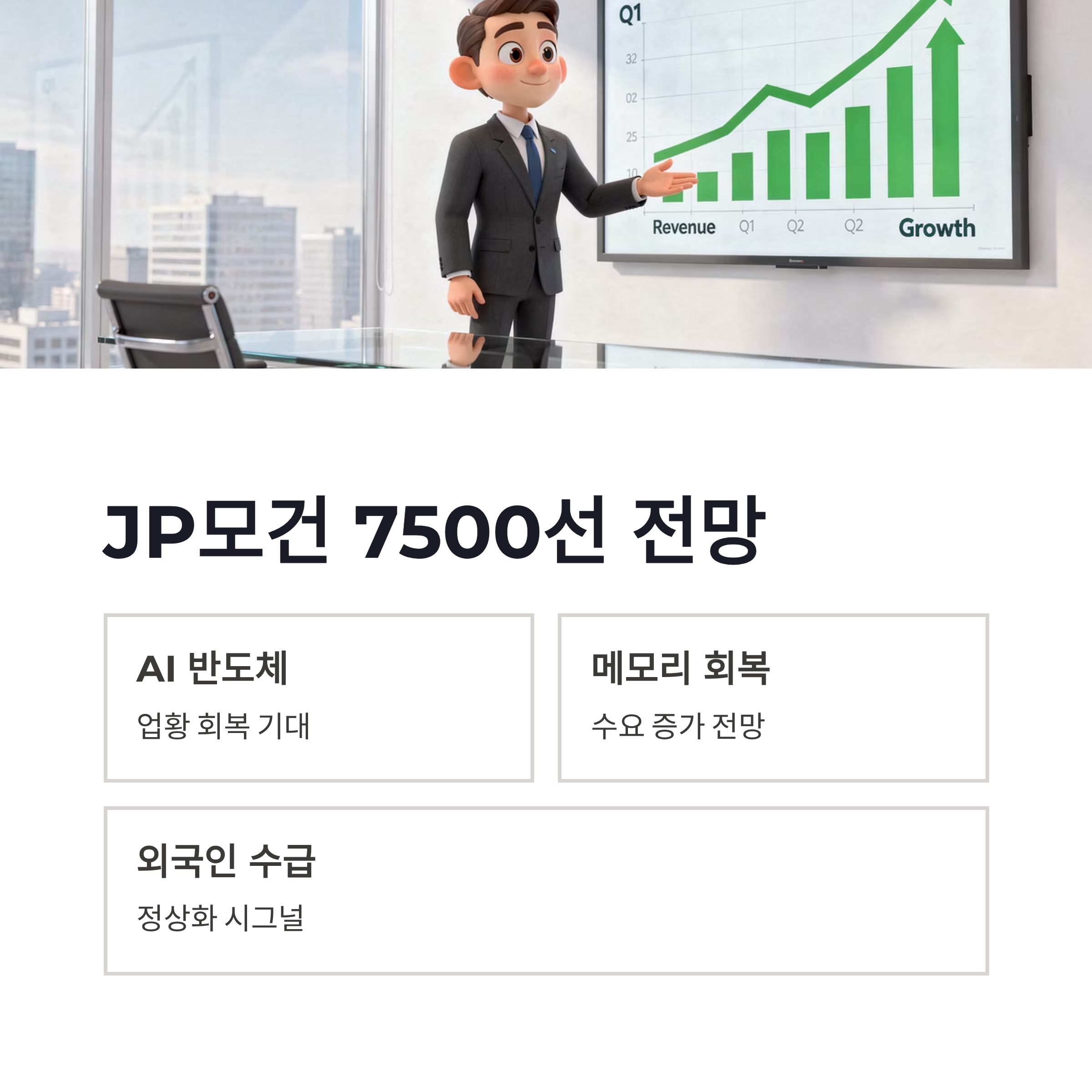 여기에 기름을 부은 게 바로 JP모건의 “코스피 7500선 가능” 전망이었죠. 처음엔 저도 “너무 나간 거 아냐?” 싶었는데, 맥락을 보면 완전 허무맹랑한 얘기는 아니더라구요. AI 반도체, 메모리 업황 회복, 외국인 수급 정상화까지 한꺼번에 엮어서 본 중장기 시나리오였습니다. 물론 단기간에 7500 가는 건 아니겠지만, 코스피 급반등 이후 기대 심리를 자극하기엔 충분했던 발언이었어요.