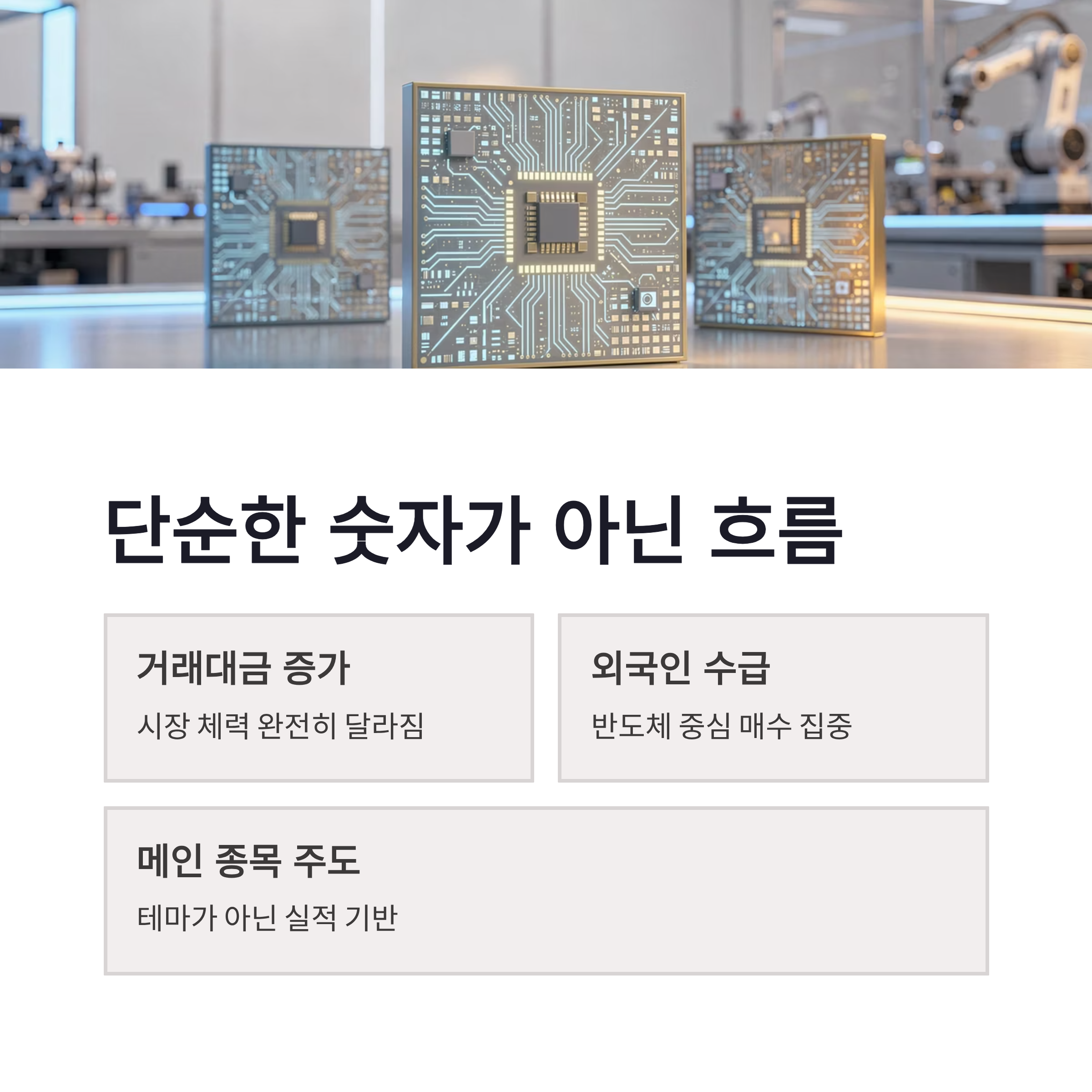 이번 코스피 5200 돌파에서 빠질 수 없는 게 바로 반도체입니다. 특히 삼성전자와 하이닉스는 그냥 올랐다 수준이 아니라, 시장 전체 방향을 잡아줬다는 느낌이었어요. 외국인 매수 비중이 다시 확실히 붙으면서 개인 체력도 살아나는 구조였구요.