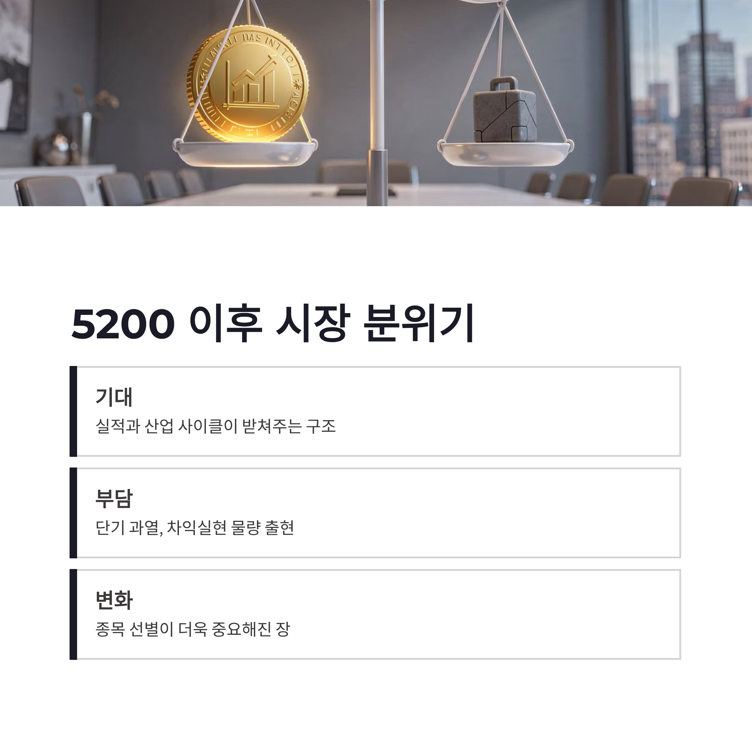 코스피 5200 이후 시장 분위기, 기대와 부담 공존