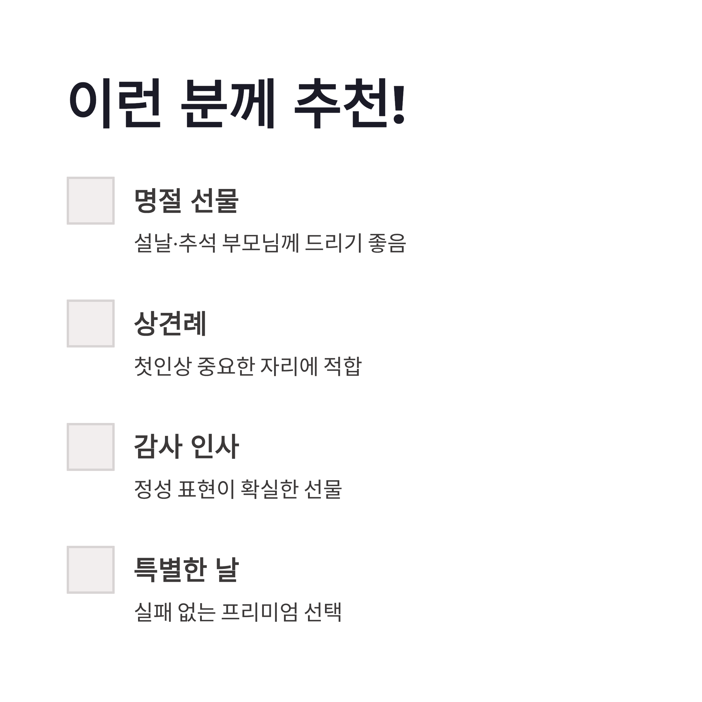 | 포장 | 선물 전용 패키지 | 명절·행사에 적합 |