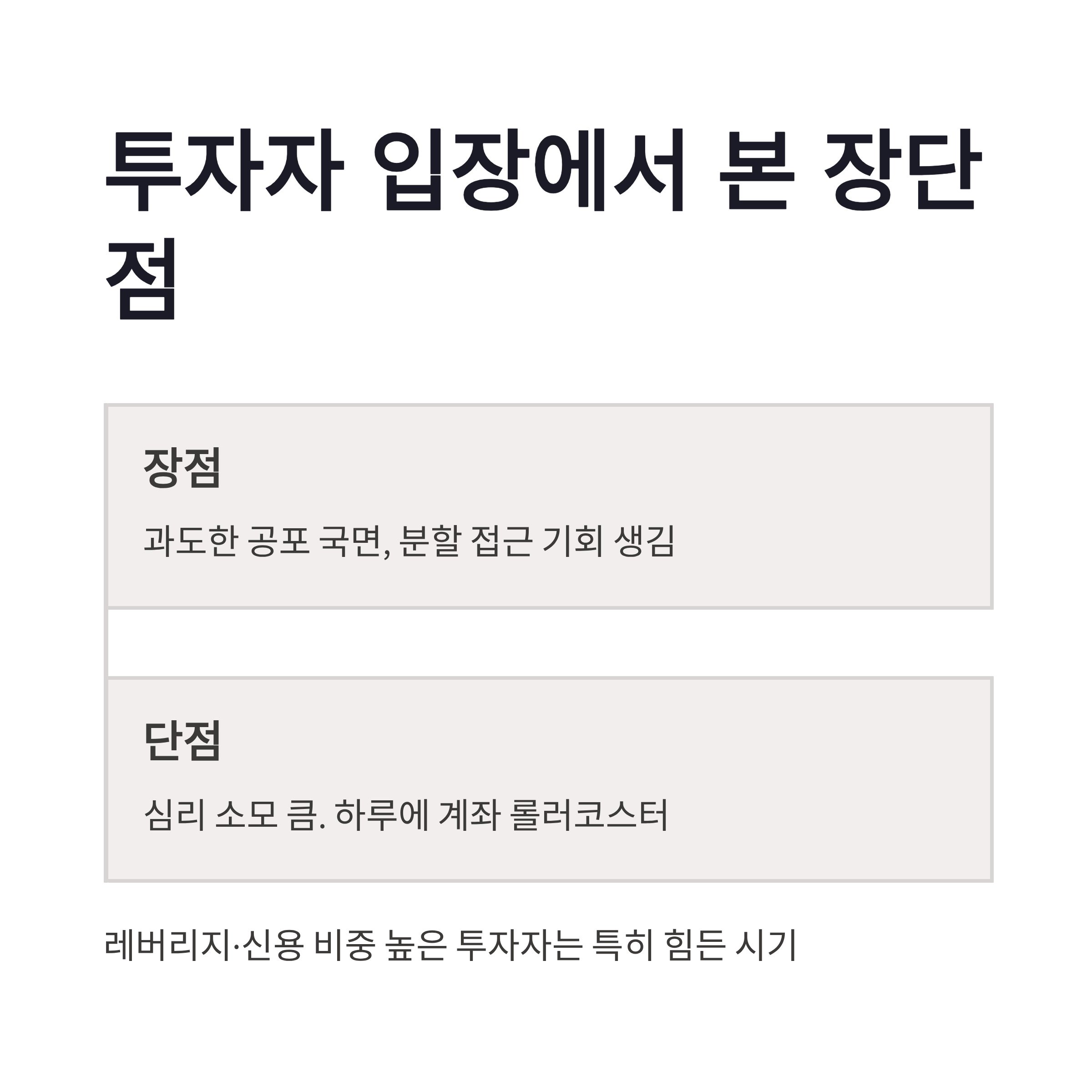 이번 트럼프 발언 사태를 보면서 느낀 건 하나였어요. 요즘 시장은 펀더멘털보다 ‘멘트’에 더 민감하다는 점입니다. 실적 나쁘지 않은 종목들도 이유 없이 같이 밀렸고, 변동성 지수는 순식간에 튀어 올랐습니다. 장점이 없는 건 아니에요. 과도한 공포 국면에선 분할 접근 기회가 생기기도 하니까요. 다만 단점은… 심리 소모가 큽니다. 하루에 계좌가 롤러코스터 타면 멘탈이 버티질 못하겠더라구요. 특히 레버리지·신용 비중 높은 분들은 이번에 진짜 힘들었을 듯합니다.