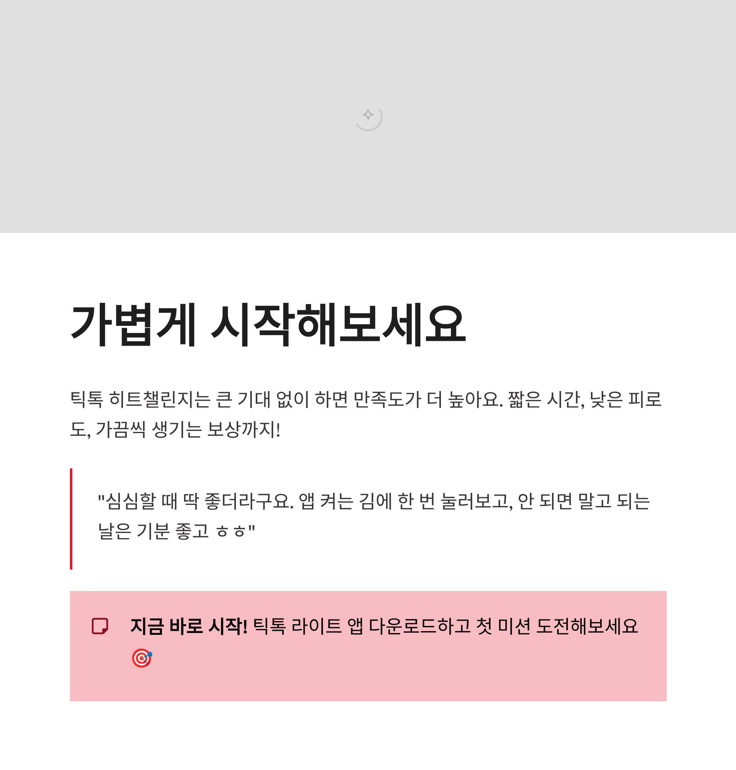 정리해보면 틱톡 히트챌린지는 큰 기대 없이 하면 만족도가 더 높은 챌린지예요. 짧은 시간, 낮은 피로도, 가끔씩 생기는 보상까지. 요즘처럼 심심할 때 딱 좋더라구요. 앱 켜는 김에 한 번 눌러보고, 안 되면 말고 되는 날은 기분 좋고 ㅎㅎ 이런 게 제일 오래 가는 것 같아요. 가볍게 즐길 앱테크 찾는 분들한테는 틱톡 히트챌린지 꽤 괜찮은 선택이었어요.