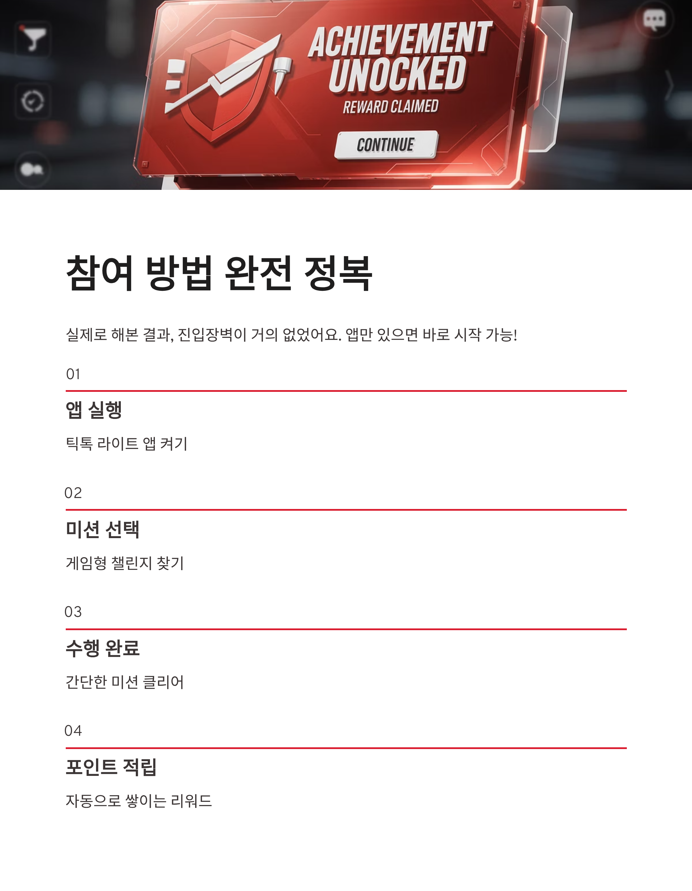 | 참여 방식 | 앱 내 게임·미션 수행 | 생각보다 단순 |