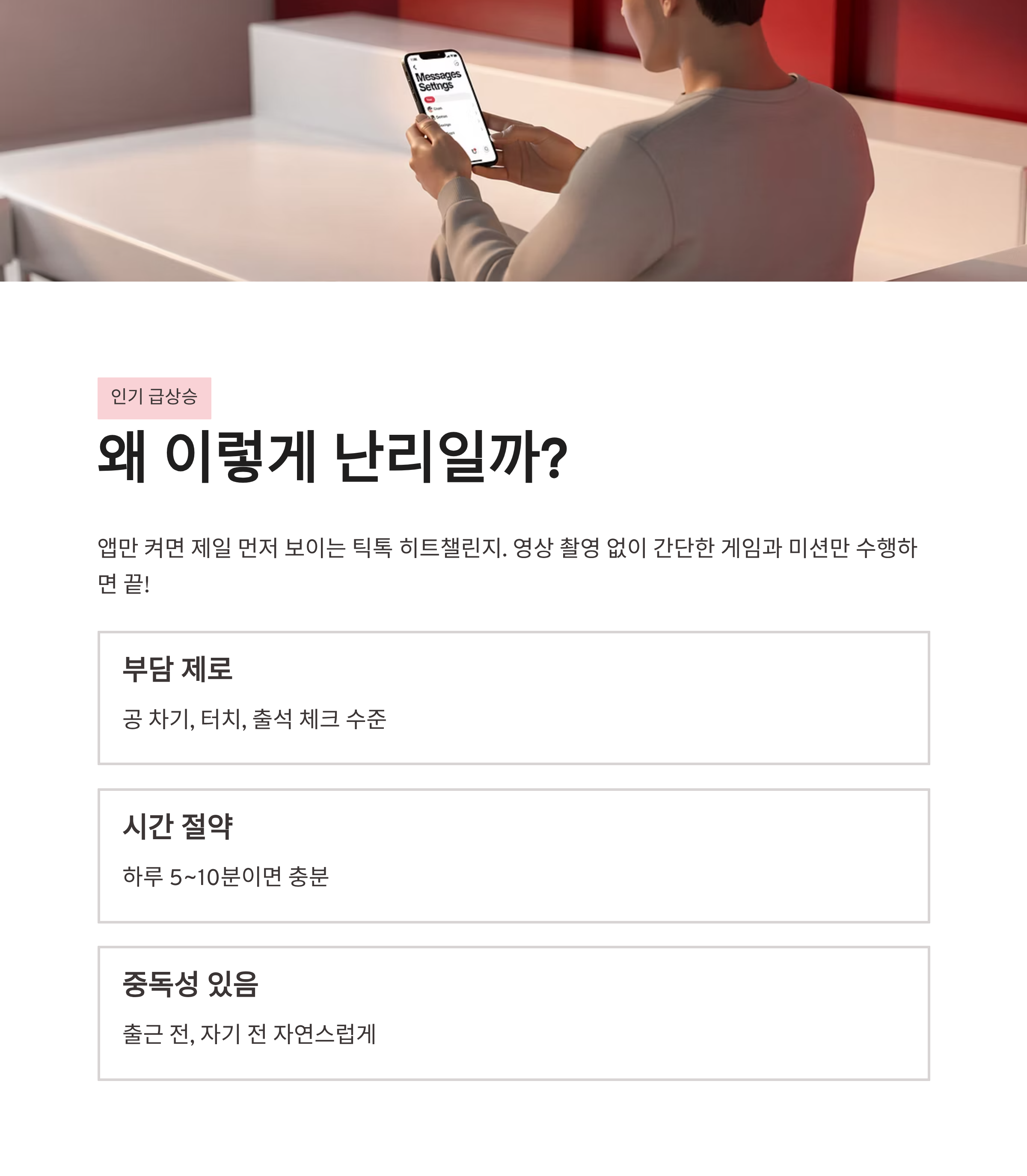 제가 직접 해보면서 느낀 틱톡 히트챌린지 흐름은 딱 이렇습니다. 앱만 있으면 끝이라 진입장벽이 거의 없어요.