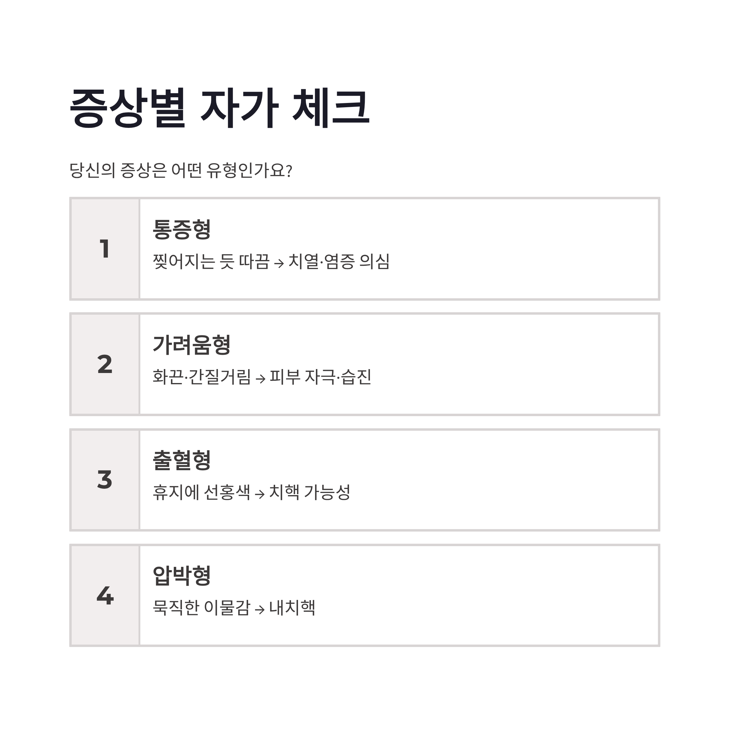 | 증상 유형 | 대표 느낌 | 의심 원인 |