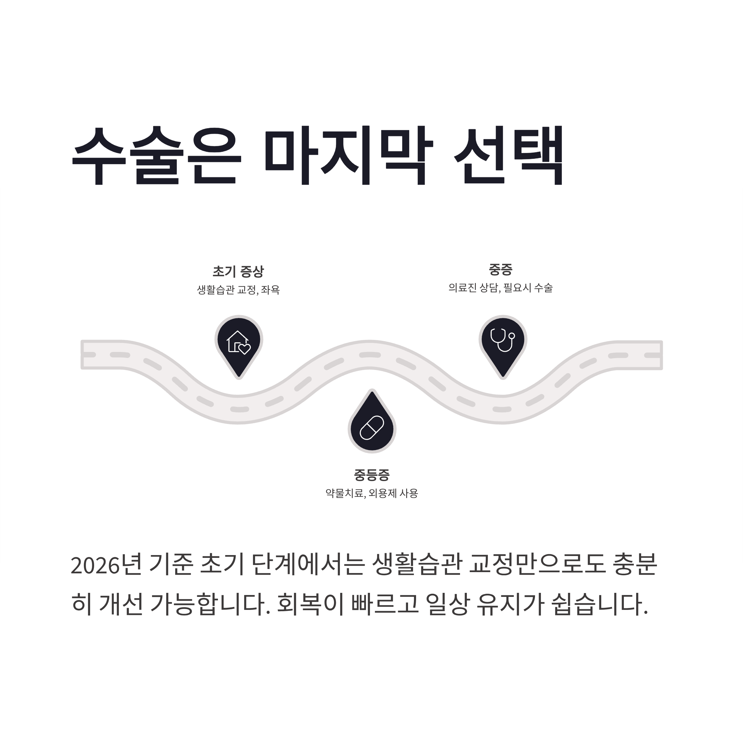 초기에 관리하면 생활습관 교정만으로도 충분히 좋아질 수 있고, 필요하면 전문 진료를 받는 것도 부담스러워할 일은 아니구요. 몸이 편해야 하루가 편하잖아요 ㅎㅎ