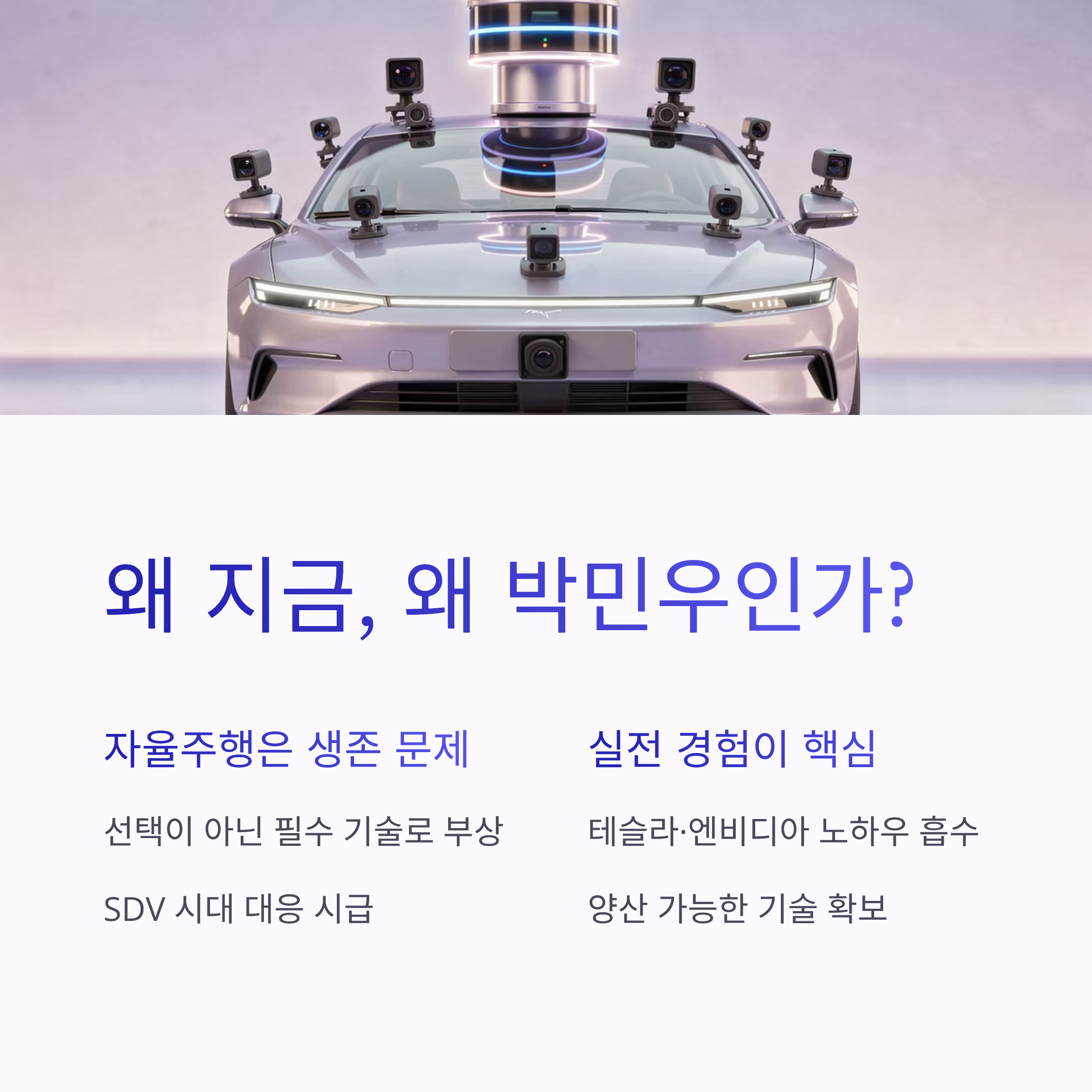 저도 예전엔 현대차 자율주행 얘기 나오면 “음… 아직은?” 이런 느낌이었는데, 현대차 박민우 박사 합류 이후로는 확실히 톤이 달라졌어요. 기술을 아는 사람이 방향을 잡는다는 게 이렇게 중요한가 싶더라구요.
