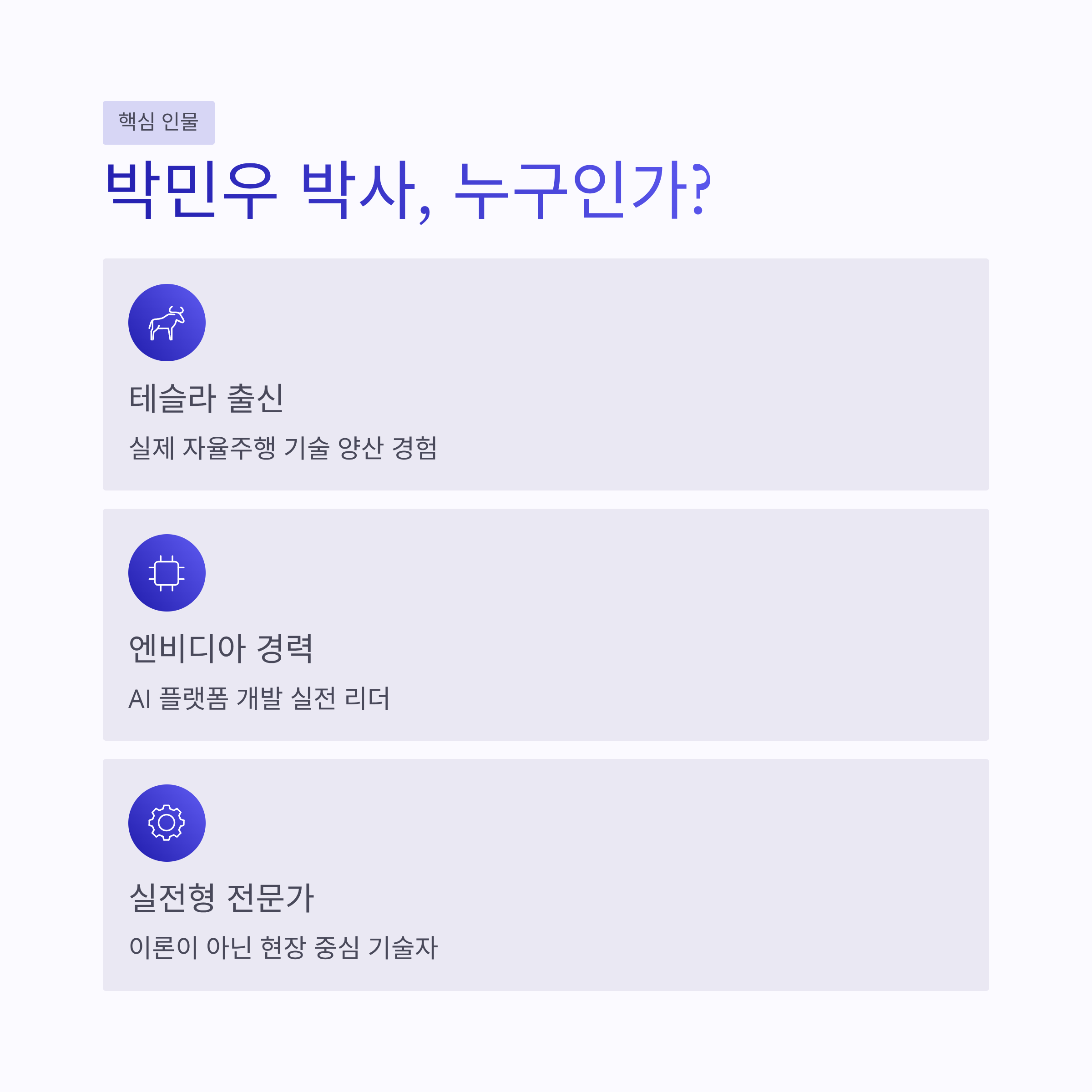 솔직히 이 뉴스 처음 봤을 때 살짝 놀랐습니다. 현대차 박민우 박사라니, 이름부터 무게감이 다르더라구요. 현대자동차그룹이 자율주행이랑 차량 소프트웨어 쪽에서 “이제 진짜 간다”는 신호를 준 느낌이었어요. 박민우 박사는 단순 연구자가 아니라, 테슬라랑 엔비디아에서 실제로 기술을 만들고 양산까지 끌고 간 실전형 리더잖아요. 말 그대로 이론만 아는 사람이 아니라, 현장에서 굴러본 사람이라는 점이 큽니다. 이번에 현대차 박민우 박사는 첨단차플랫폼(AVP) 본부장에, 자율주행 자회사 포티투닷 대표까지 겸임하게 됐는데요. 한 사람이 기술 방향이랑 실행을 동시에 쥐는 구조라, 의사결정 속도 자체가 달라질 수밖에 없겠구나 싶었어요. 개인적으로는 “아, 이제 소프트웨어에서 뒤처진다는 말은 안 듣겠네” 이런 생각도 들었구요.