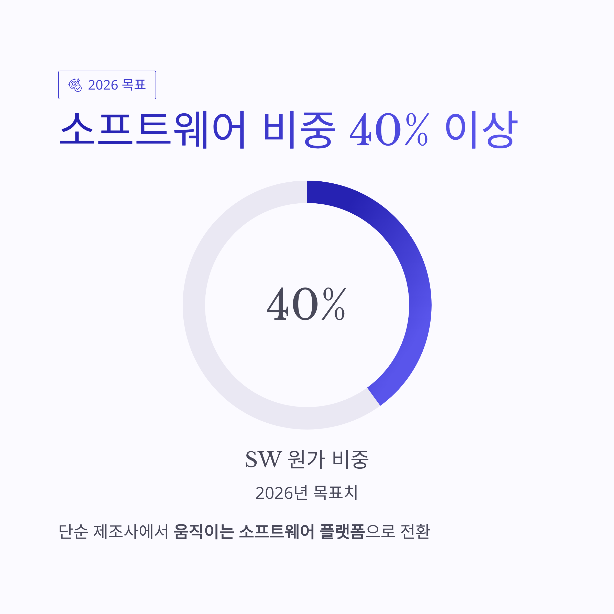 제가 느낀 포인트는 딱 하나였어요. 현대차 박민우 박사 영입은 보여주기용 인사가 아니라는 거. 실제로 현대차는 2026년 기준 차량 소프트웨어 비중을 원가 기준 약 40% 이상으로 끌어올리겠다는 내부 목표를 잡고 있다고 알려져 있잖아요. 단순히 차 잘 만드는 회사에서, 움직이는 소프트웨어 플랫폼으로 가겠다는 방향이죠. 정리해보면 흐름은 이렇더라구요.