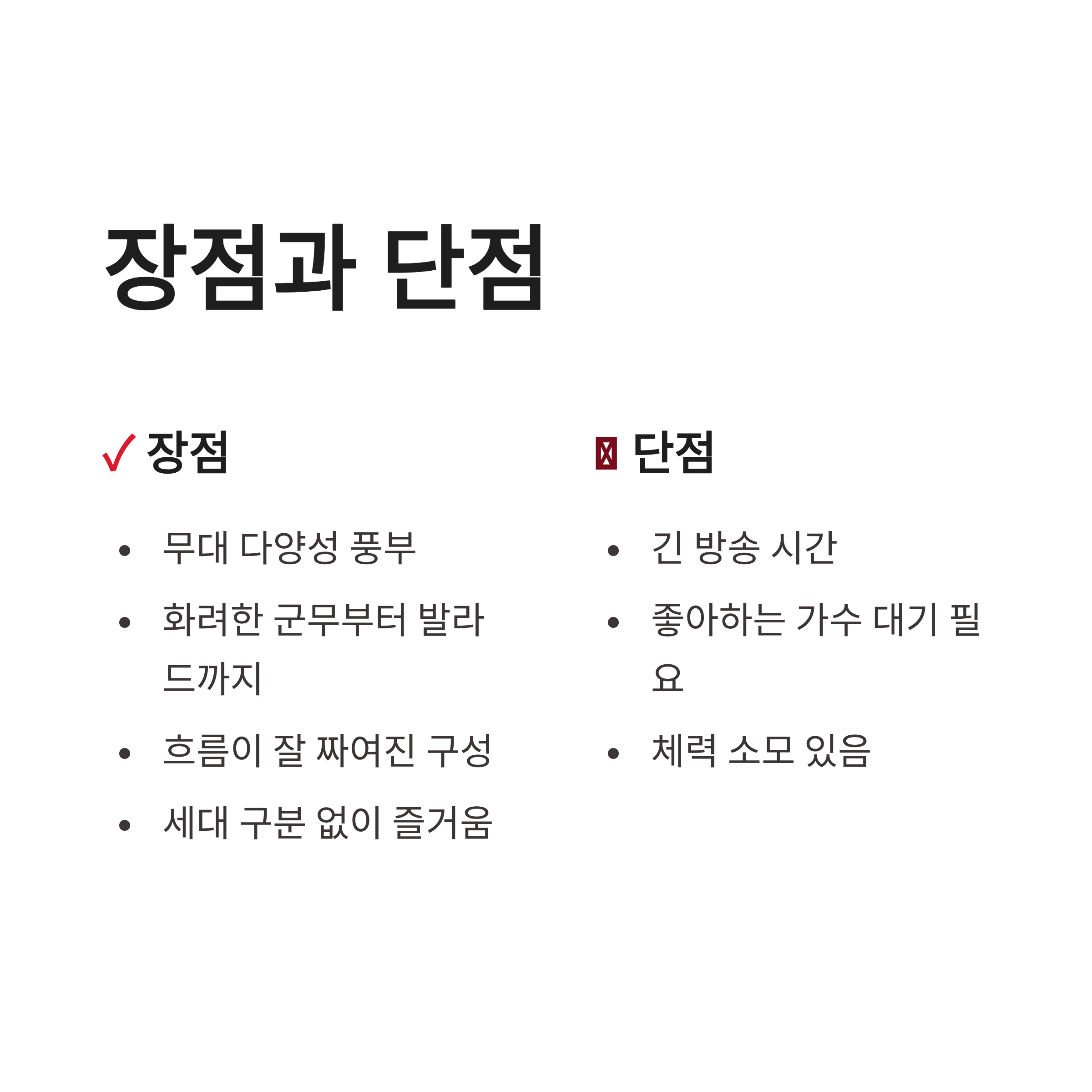 | TV | MBC 본방송 | 대화면, 안정적인 화질 |
