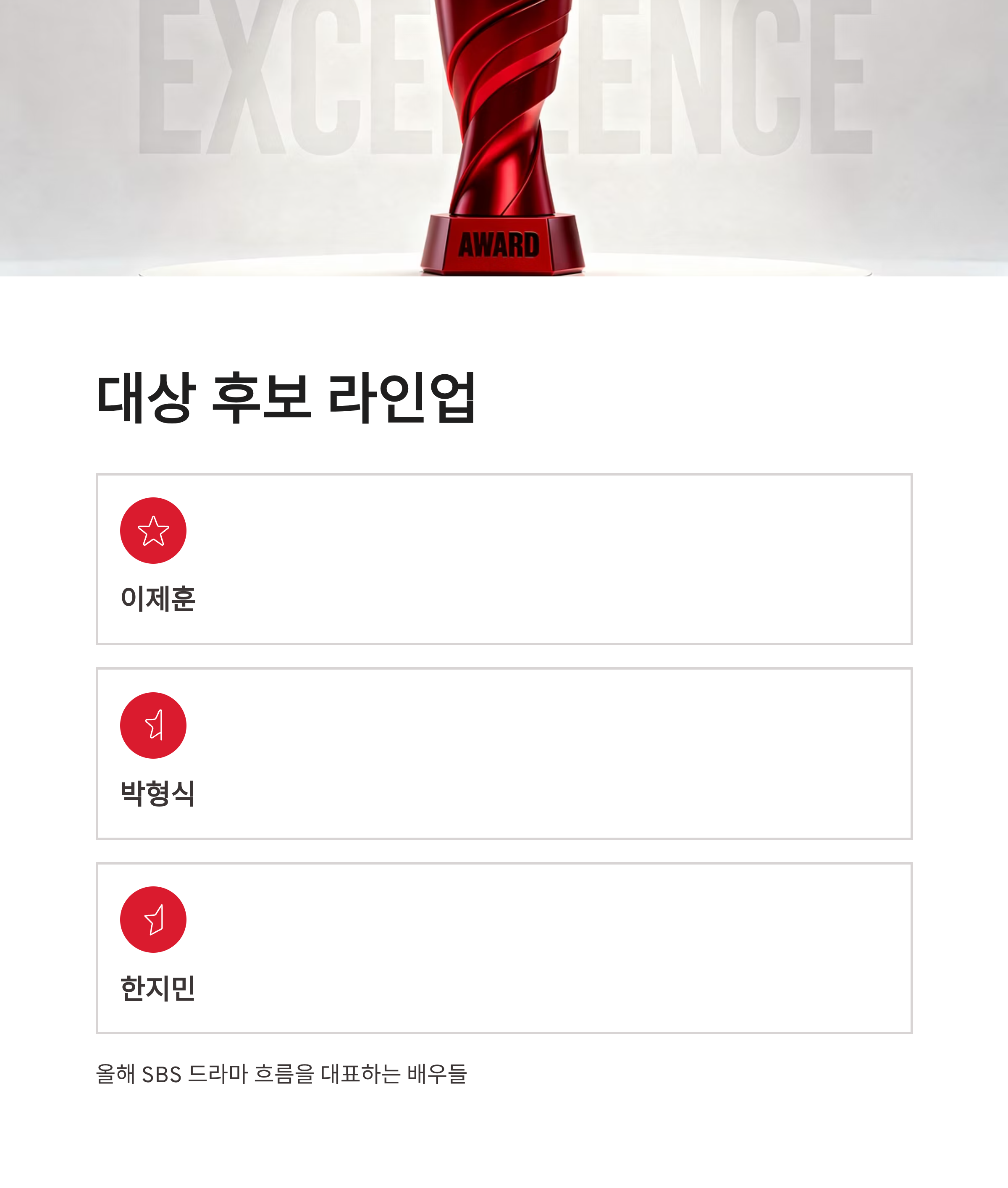 2025 SBS 연기대상 중계 MC와 대상 후보 흐름
