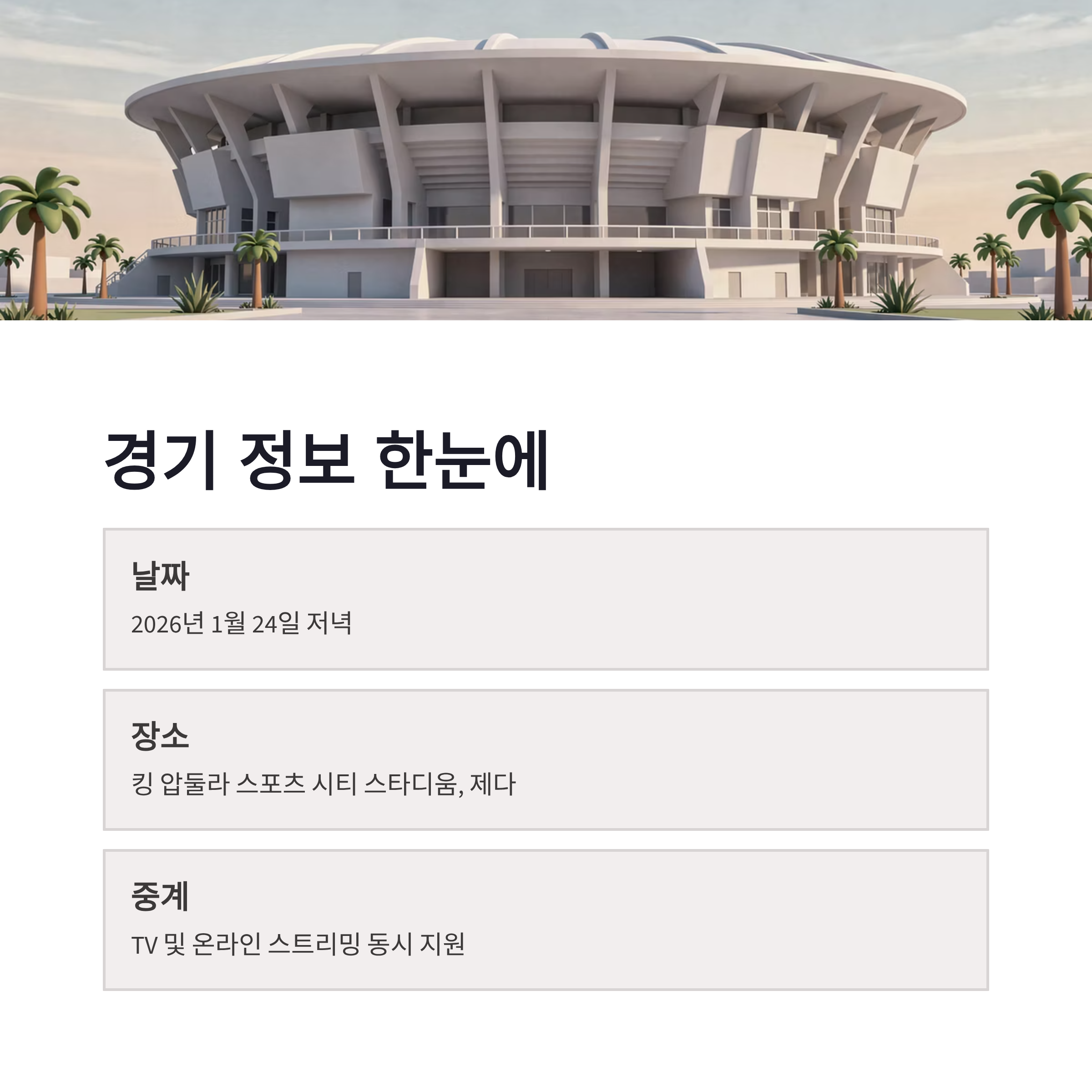 이번 2026년 01월 24일 베트남 U23 대한민국 U23 중계는 솔직히 그냥 3·4위전 그 이상 느낌이었구요. 준결승에서 아쉽게 멈춘 두 팀이 동메달이라는 마지막 목표를 두고 다시 만나는 경기라 긴장감이 꽤 큽니다. 경기는 2026년 1월 24일, 사우디아라비아 제다에 위치한 킹 압둘라 스포츠 시티 스타디움에서 열리는데요. 한국 U23은 일본과의 준결승에서 아쉽게 패했고, 베트남 U23 역시 다른 준결승에서 발걸음을 멈췄습니다. 그래서 이번 2026년 01월 24일 베트남 U23 대한민국 U23 중계는 “유종의 미를 거둘 수 있느냐”가 핵심 포인트였구요. 한 경기 남았는데 그냥 보낼 순 없잖아요, 이런 분위기입니다.
