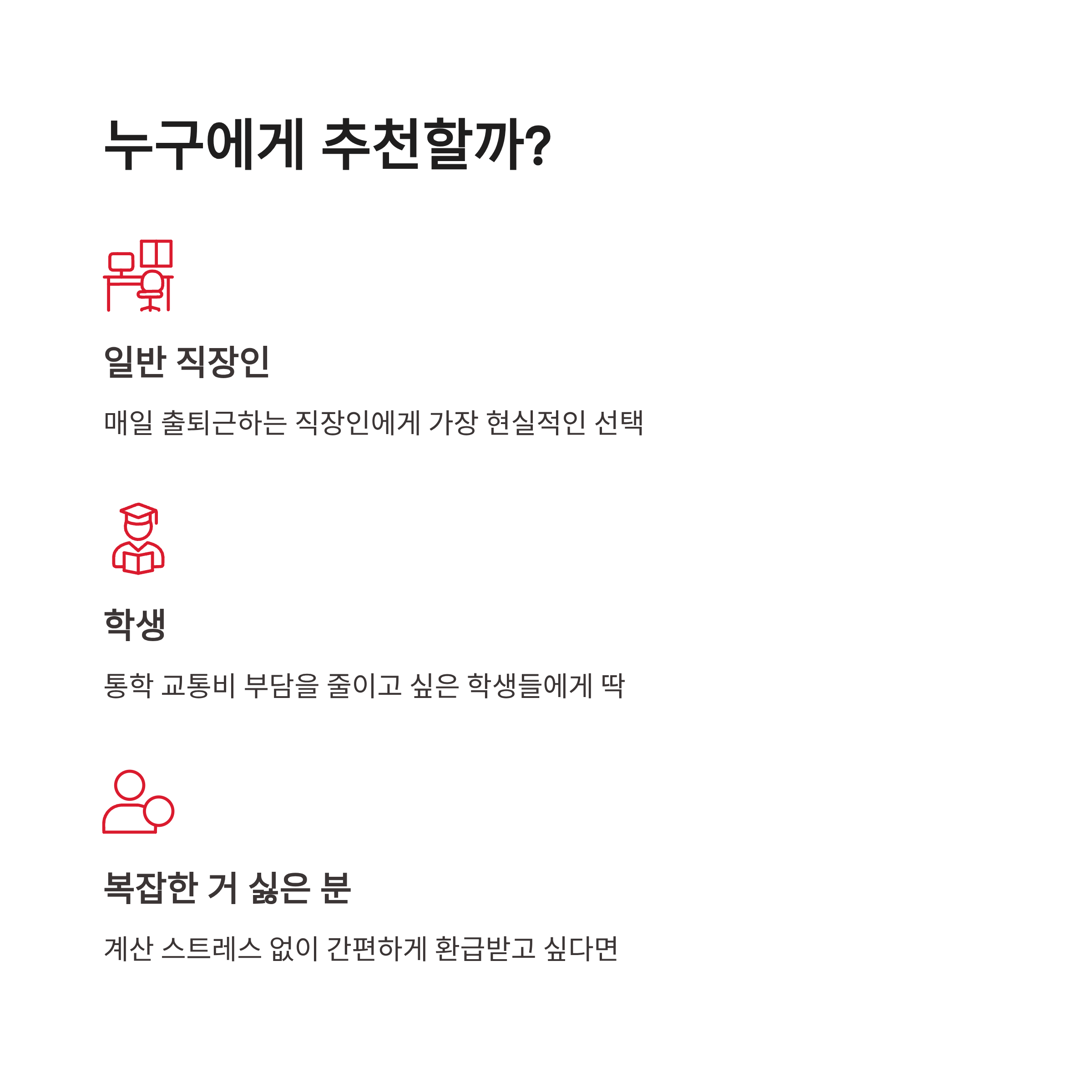 | 추천 대상 | 일반 이용자 | 고정 출퇴근 | 장거리·고빈도 |